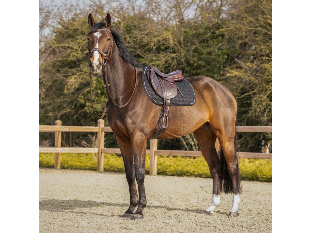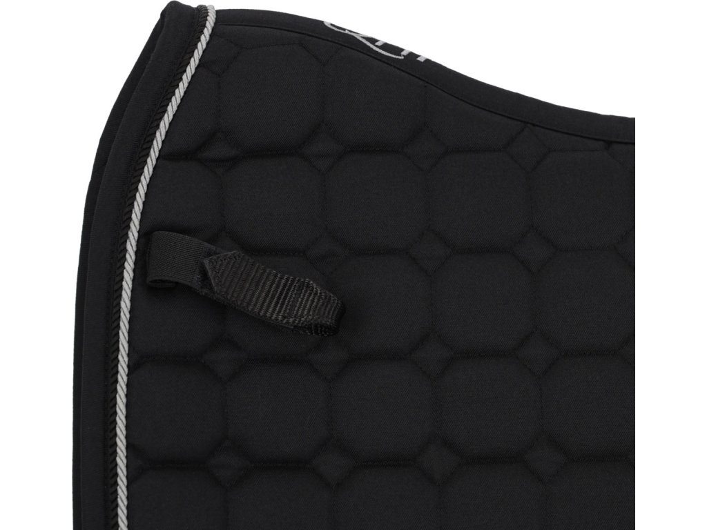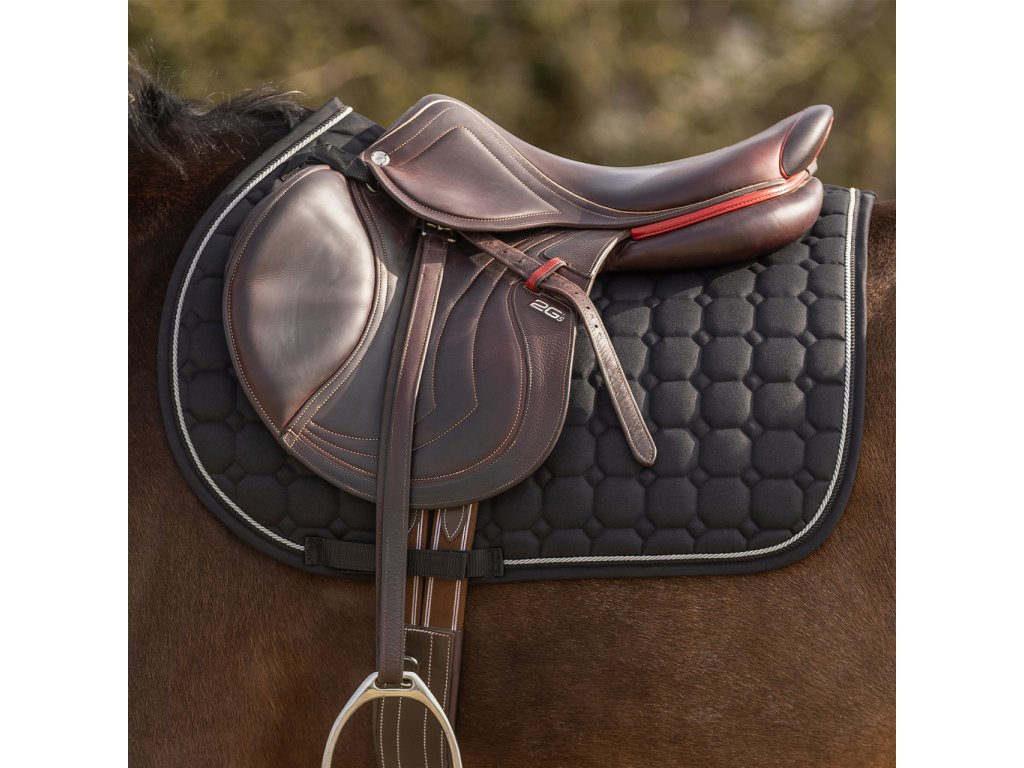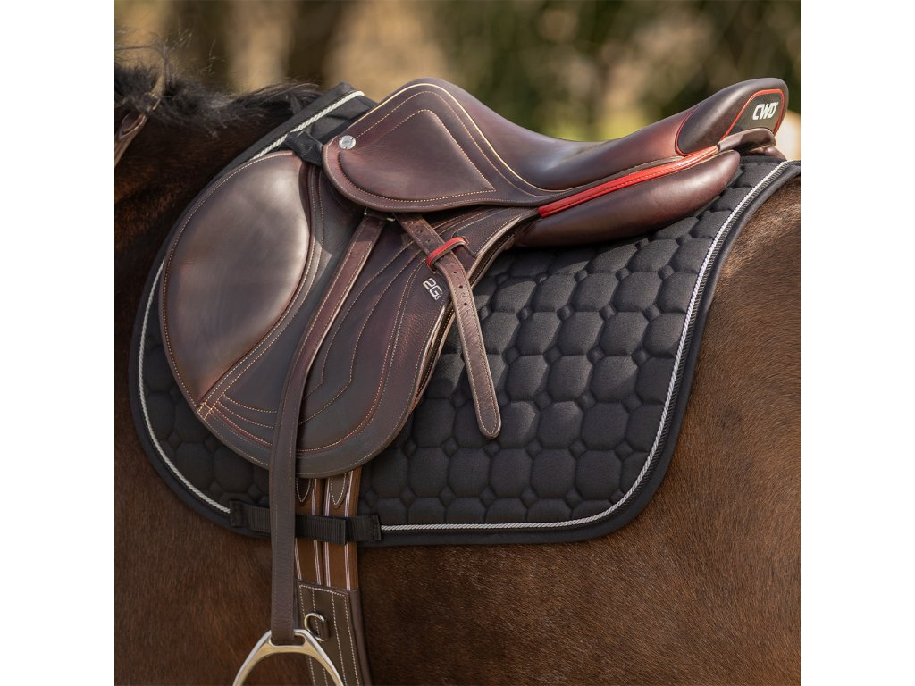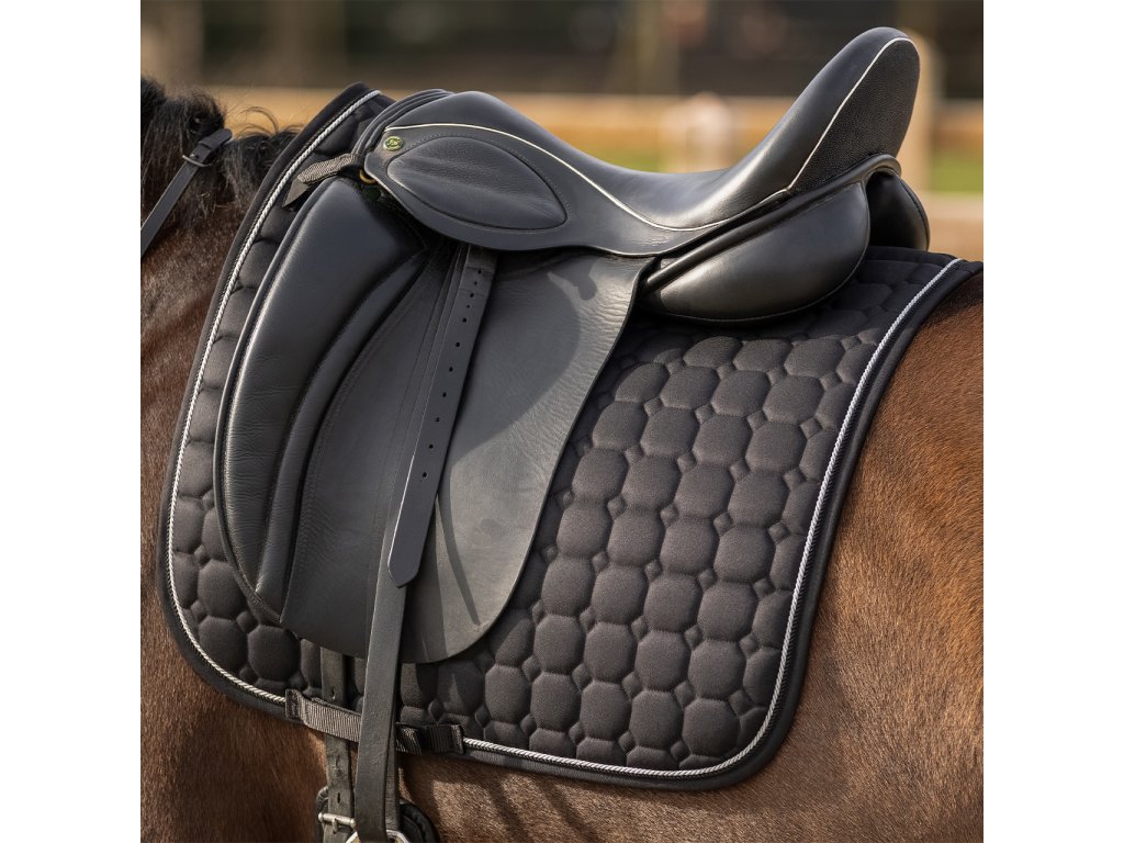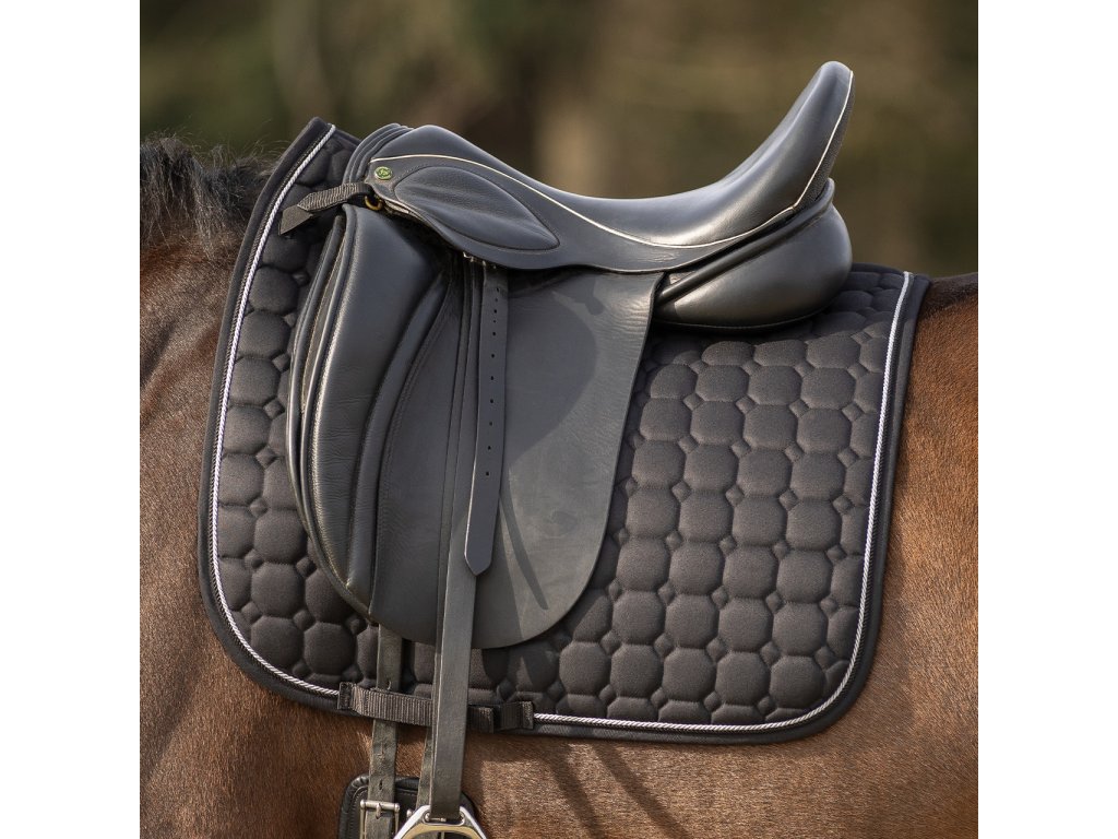 Czaprak Firenze to stylowy element o anatomicznym kształcie, zapewniającym optymalne dopasowanie. Oddychająca podszewka z siateczki zapewnia doskonałą absorpcję potu. Jest ozdobiony lamówką i logo producenta. Dzięki szlufkom na popręg i szlufkom na siodło z rzepami dobrze się trzyma na miejscu.