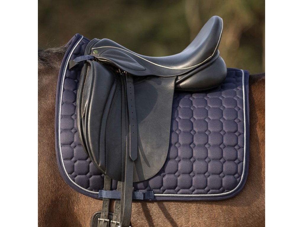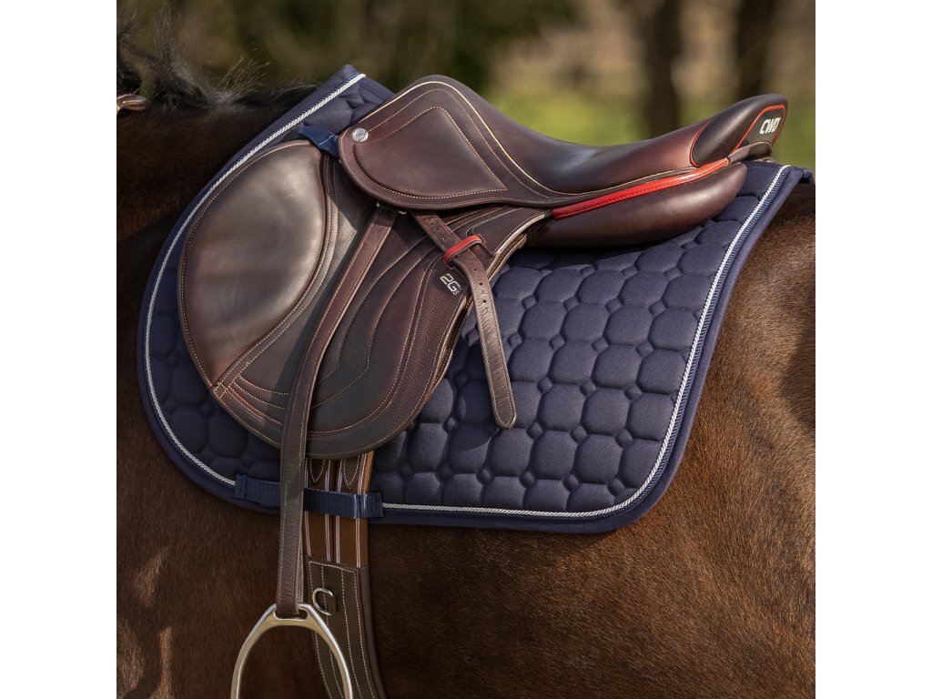 Czaprak Firenze to stylowy element o anatomicznym kształcie, zapewniającym optymalne dopasowanie. Oddychająca podszewka z siateczki zapewnia doskonałą absorpcję potu. Jest ozdobiony lamówką i logo producenta. Dzięki szlufkom na popręg i szlufkom na siodło z rzepami dobrze się trzyma na miejscu.