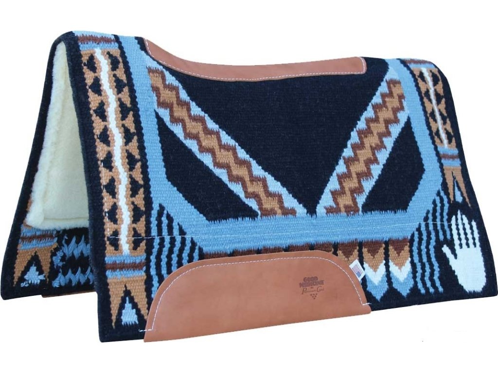 Wysokiej jakości westernowy pad pod siodło, wierzch wykonany z ręcznie tkanej wełny nowozelandzkiej. Profilowana wełna merino od spodu dopasowuje się do kształtu grzbietu konia, jest oddychająca i odporna na pot. Doskonały dla wrażliwych koni dzięki miękkiej wyściółce wewnątrz. Wyposażony w system SMx Air Ride, który zapewnia zwiększoną oddychalność i amortyzację. Poprawia dopasowanie siodła. Posiada skórzane wzmocnienia na grzbiecie i w okolicy popręgu. Dostępna w wielu kolorach.