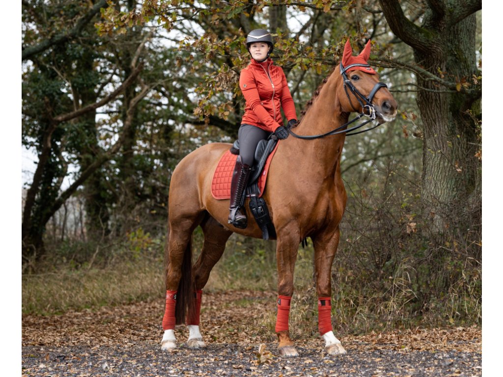 Wysokiej jakości, bardzo responsywny czaprak ujeżdżeniowy, wykonany z wysokiej jakości materiałów. Zaprojektowany we wzorze "Close Contact". Idealnie pasuje pod wszystkie siodła ujeżdżeniowe. Zachwyca pierwszorzędnym stylem. Posiada miękką i oddychającą podszewkę bambusową. 100% naturalny materiał bambusowy bardzo skutecznie reguluje temperaturę i skutecznie odprowadza pot. Miękka zamszowa lamówka zapobiega otarciom. Dzięki specjalnej technice, czaprak idealnie dopasowuje się i pozostaje na miejscu na grzbiecie konia, nie przesuwając się. W obszarze klamry zastosowano teksturowaną skórę PU z wytłoczonym logo LeMieux i pętelką na popręg. Zawiera również parciane paski z zapięciem na rzepy do mocowania do D-ringów siodła.
