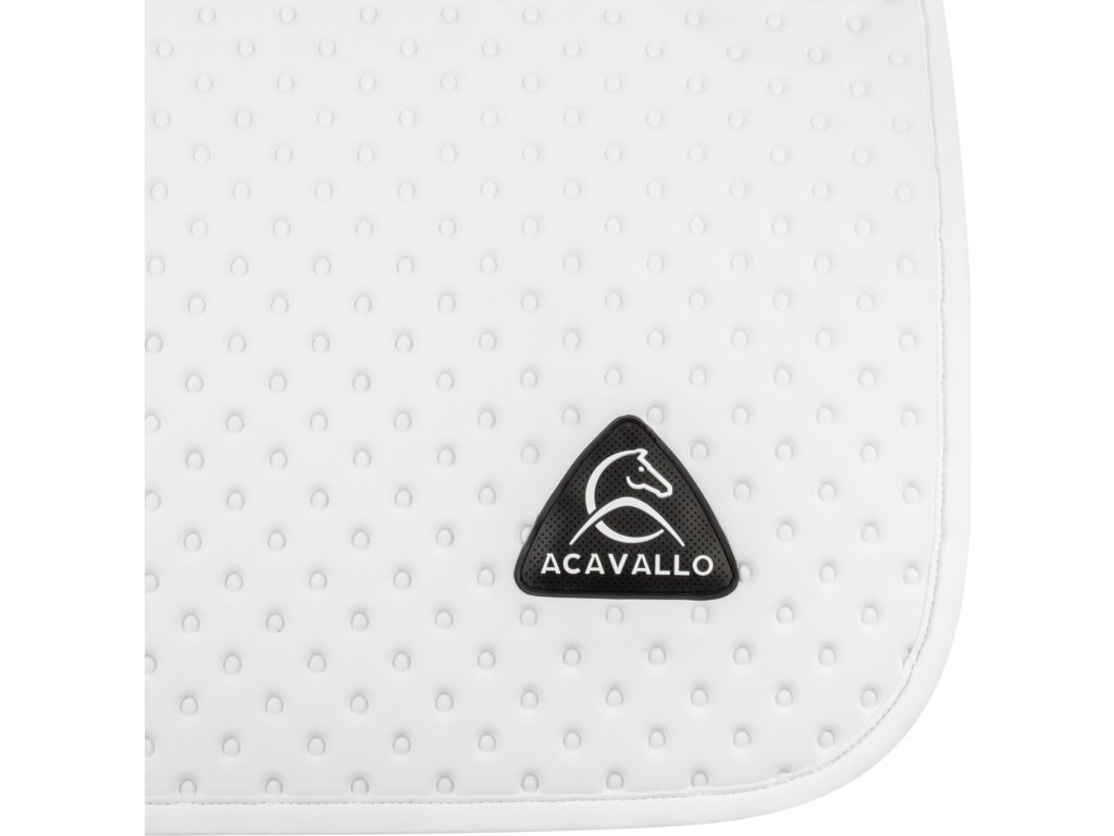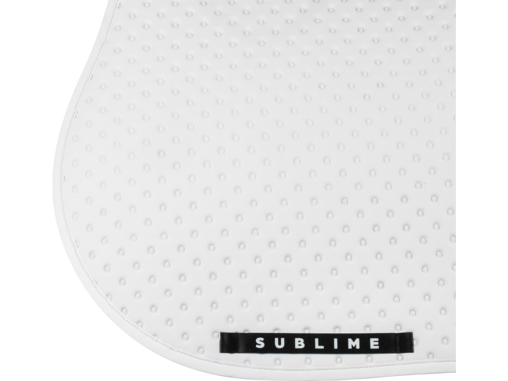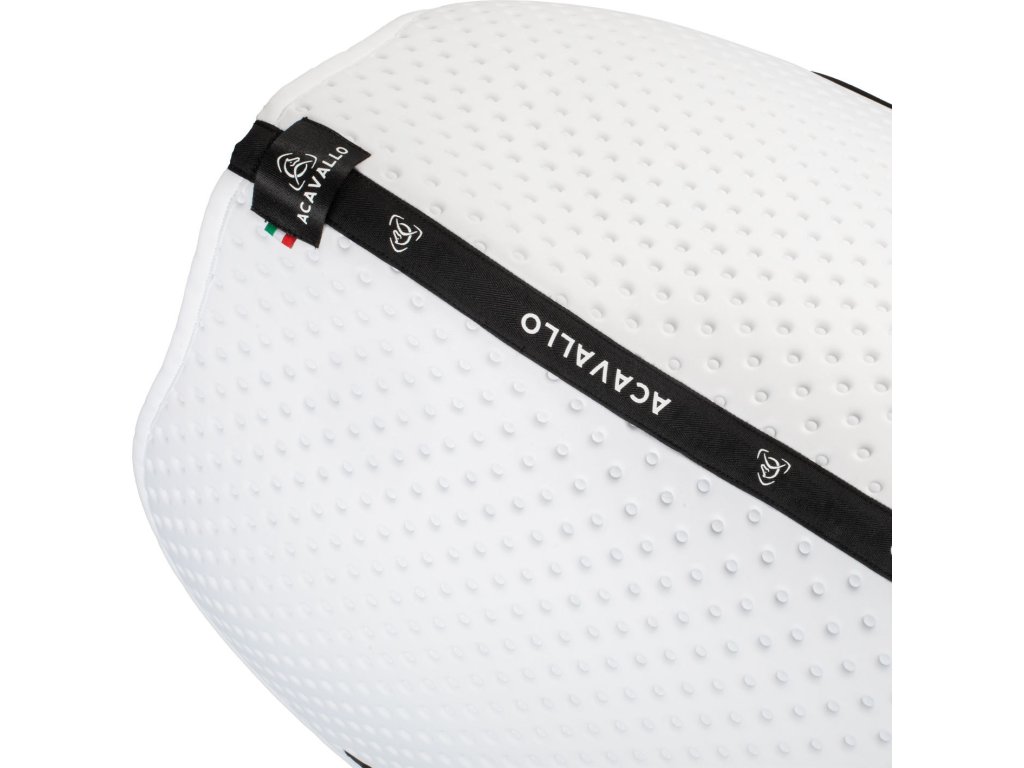 Nowoczesny czaprak skokowy wykonany jest z innowacyjnego materiału Lycra z antypoślizgowymi kropkami 3D, które zapewniają stabilną pozycję siodła i pomagają równomiernie rozłożyć nacisk podczas jazdy. Wyściółka z pianki memory doskonale amortyzuje wstrząsy i przyczynia się do większego komfortu konia. Centralna wkładka wykonana z materiału 3D Spacer dopasowuje się do kształtu grzbietu konia, eliminuje nacisk na kręgosłup i zwiększa przyczepność do siodła. Ergonomiczny kształt zapewnia większą swobodę ruchów, pomaga zapobiegać problemom w wrażliwym obszarze kręgosłupa i równomiernie rozkłada ciężar. Czaprak jest przeznaczony do siodeł skokowych i jest produkowany w jednym uniwersalnym rozmiarze COB/FULL.