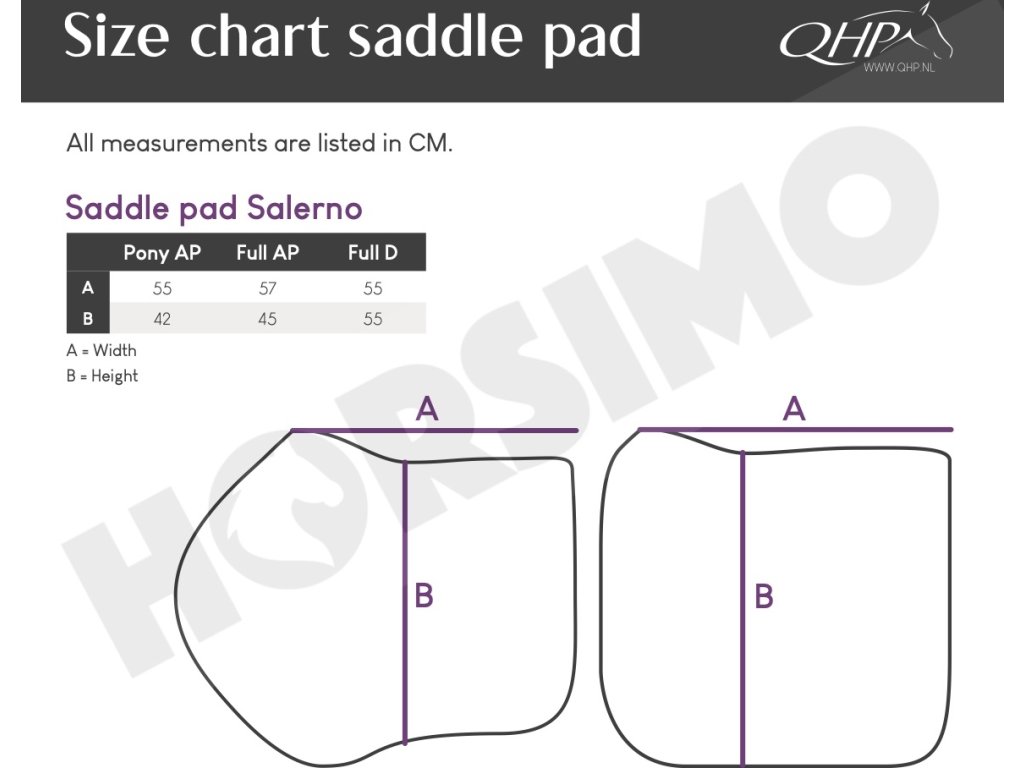 Czaprak Salerno jest anatomicznie wyprofilowany i posiada poziome pikowanie. Siateczka po wewnętrznej stronie zapewnia skuteczne odprowadzanie potu z konia lub kucyka. Okrągłe podszycie w okolicy popręgu zapewnia dodatkowe wzmocnienie.