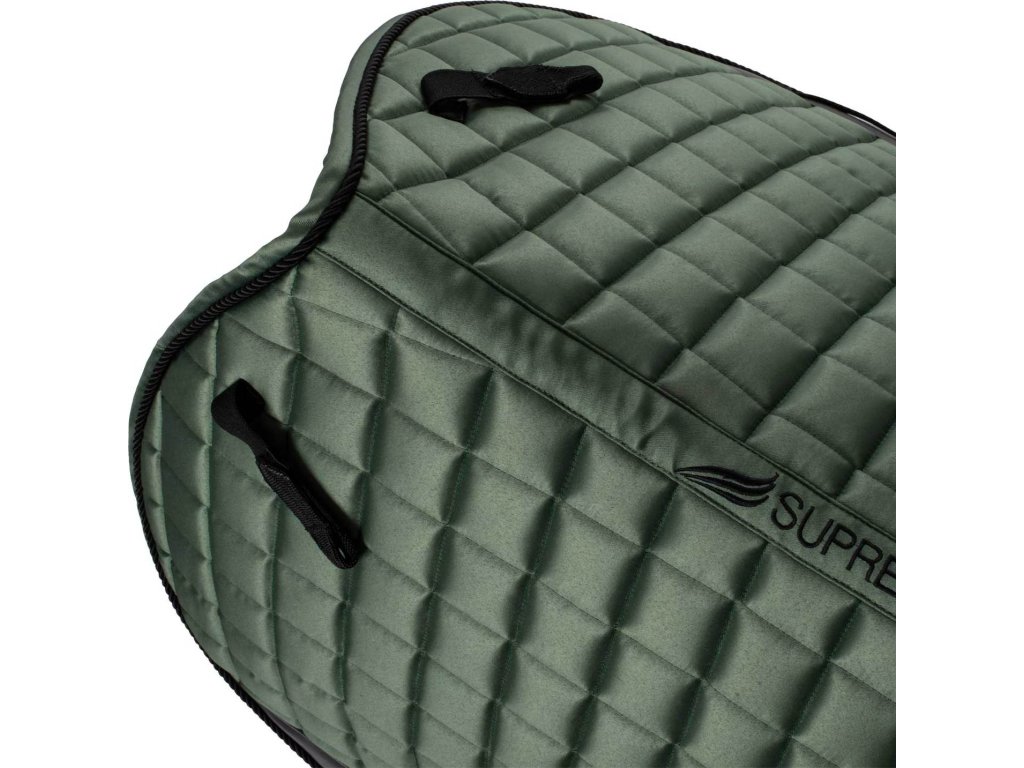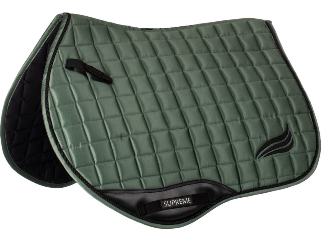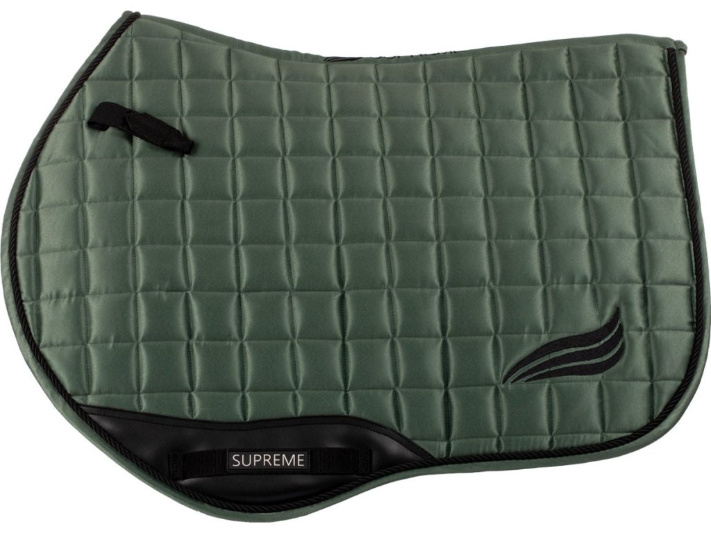 Wysokiej jakości pikowany czaprak wykonany z satynowej tkaniny. Wnętrze wykonane z funkcjonalnego, szybkoschnącego materiału, który doskonale pochłania wilgoć. Czaprak jest oddychający, zapewniając maksymalny komfort. Wypełnienie pochłania wstrząsy. Idealne dopasowanie dzięki anatomicznemu krojowi. Zaprojektowany we wzorze "Close Contact". Idealnie pasuje pod wszystkie siodła skokowe. Wzmocniony w okolicy popręgu. Wyposażony w paski do siodła i do popręgu. Ozdobiona logo i napisem Supreme.
