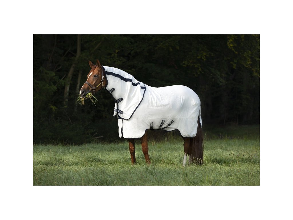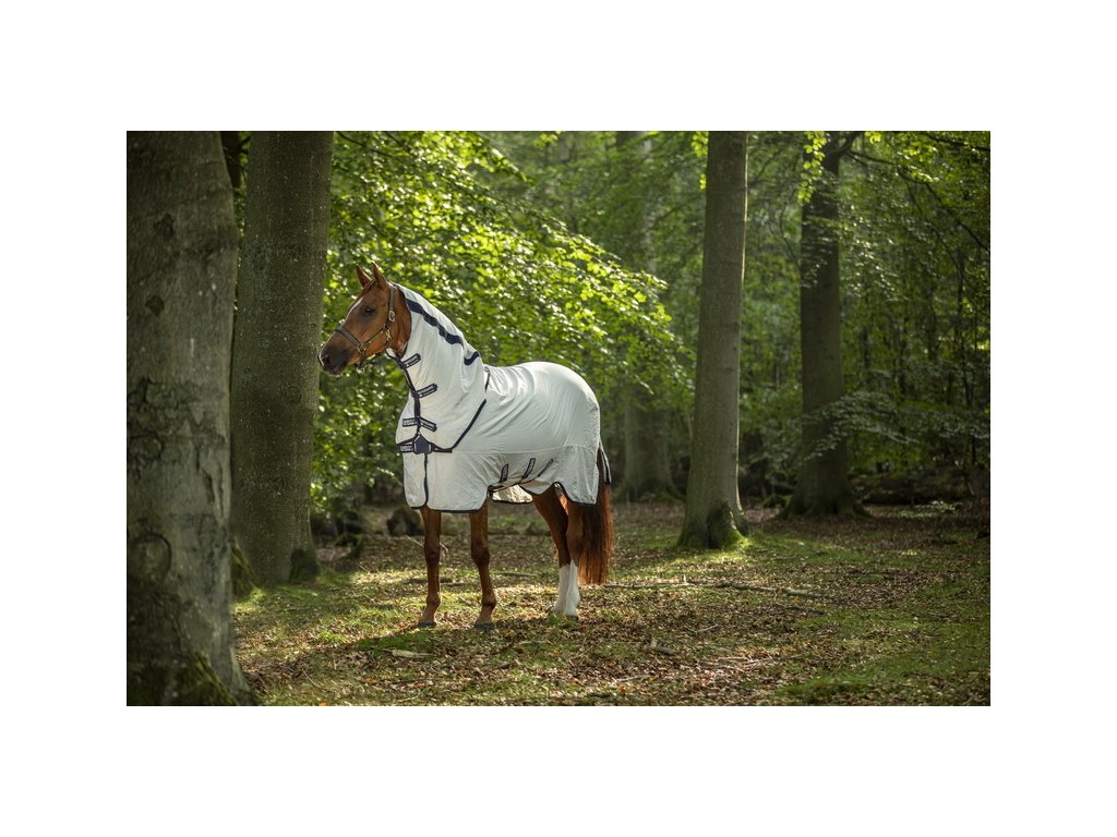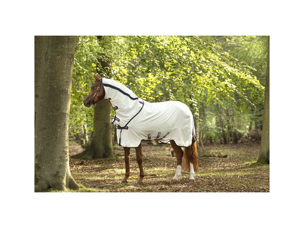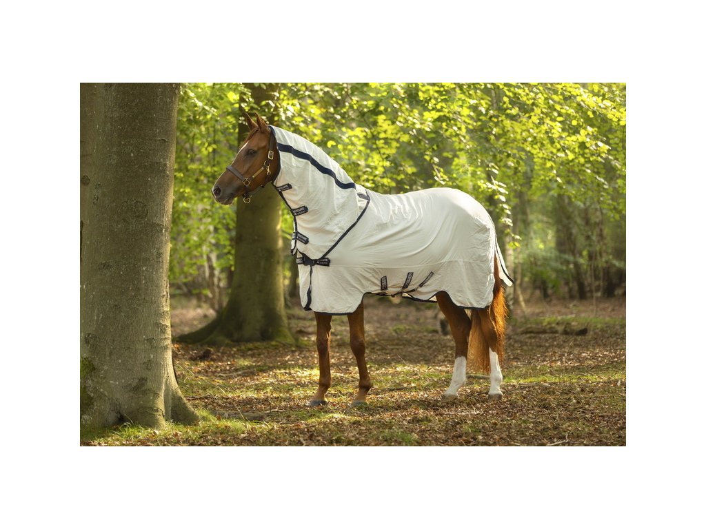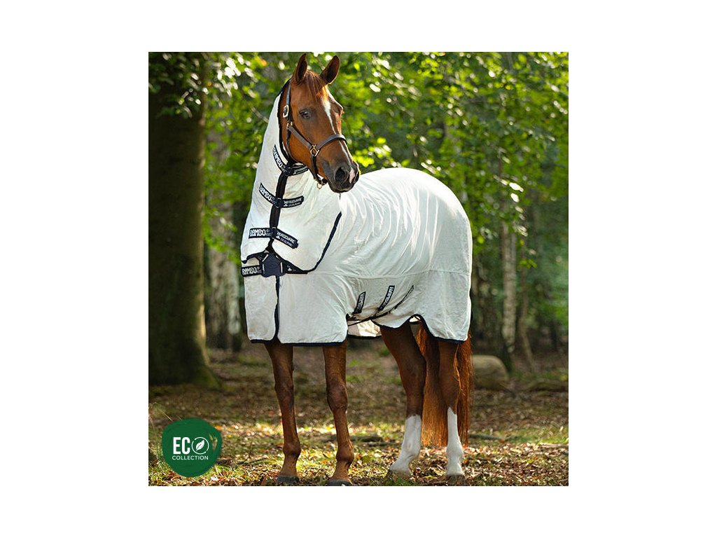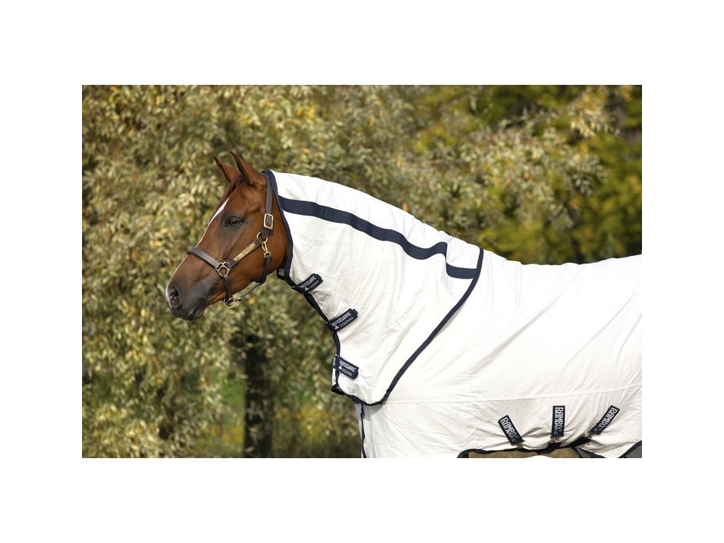 Firma Horseware wprowadziła do sprzedaży przyjazną dla środowiska letnią derkę Rambo Natura, która jest wykonana z ekologicznej i kompostowalnej tkaniny. Naturalna mieszanka konopi i bawełny zapewnia doskonałe właściwości termoregulacyjne, oddychalność i zarządzanie wilgocią. To idealna letnia derka o maksymalnej oddychalności i ochronie przed promieniowaniem UV do 95%. Doskonały wybór dla koni wrażliwych na światło słoneczne i koni z delikatną skórą. Derka posiada jedwabistą podszewkę w okolicy łopatek, grzywy i nasady ogona, która promuje połysk sierści i skutecznie zapobiega otarciom. Inne zalety to krój Surefit w okolicy karku i anatomiczny krój w okolicy nóg, które zapewniają komfort i swobodę ruchów. Wyposażona w zapięcie typu "disc" z przodu, zapięcie pod brzuchem oraz klapę ogonową ze sznurkiem. Dostarczana wraz z odpinanym elementem na szyję.
