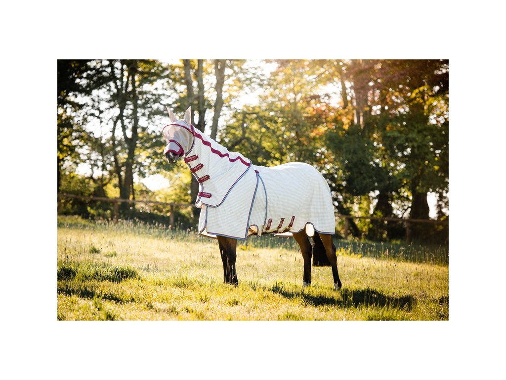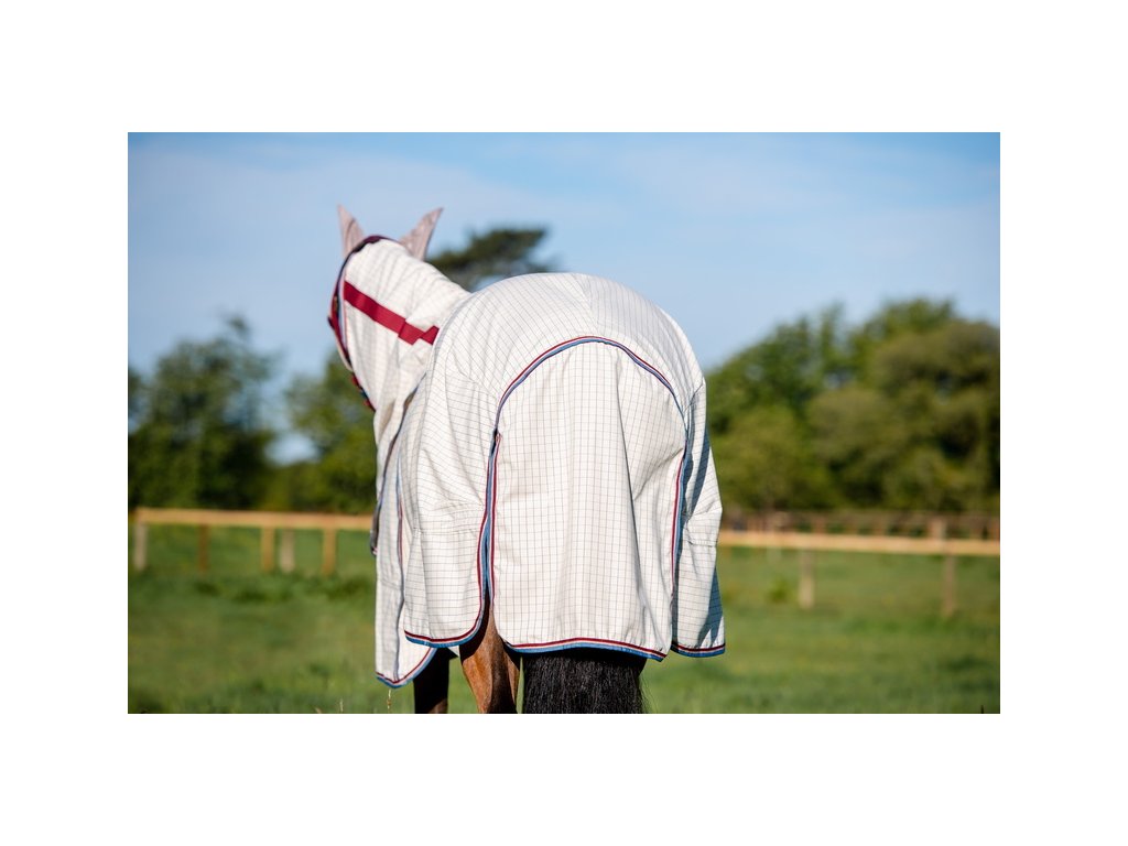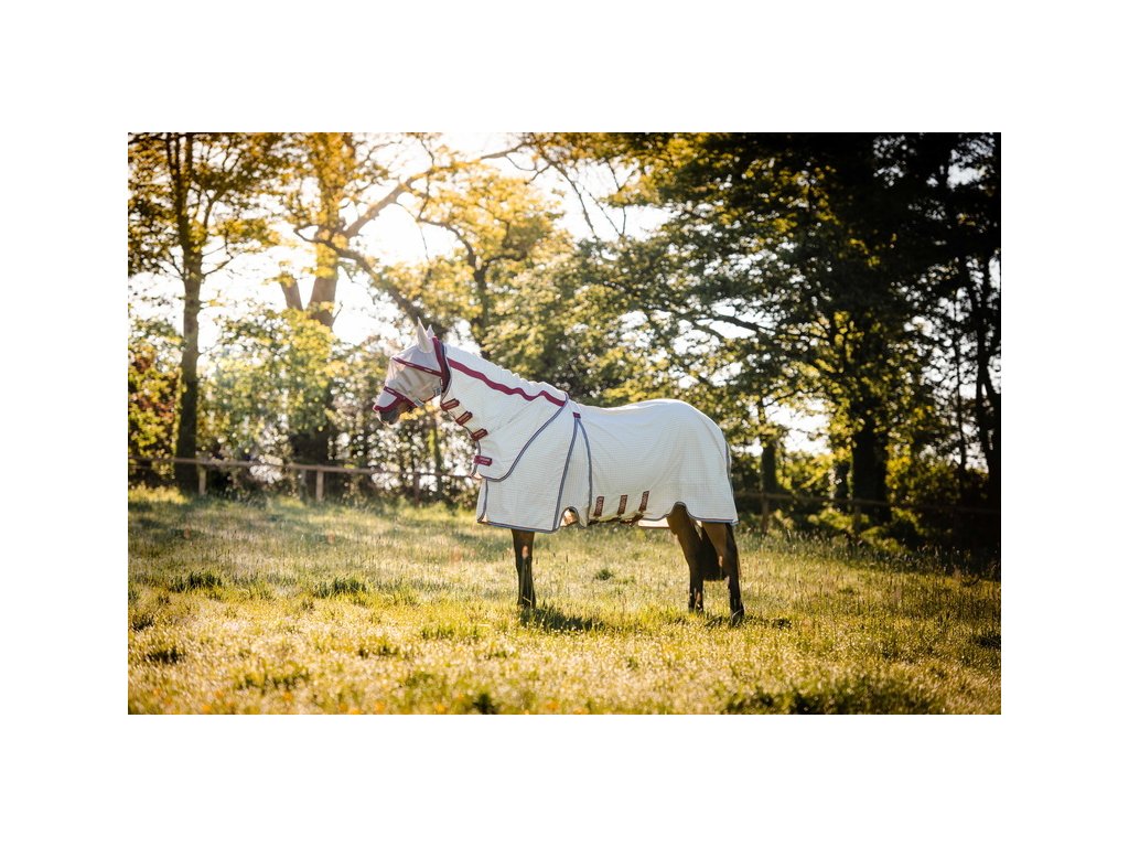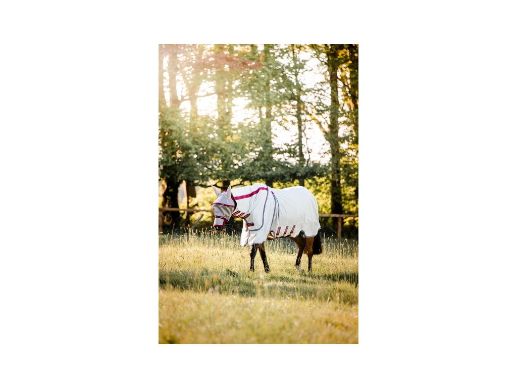 Wysokiej jakości letnia derka Rambo zapewniająca 90% ochronę przed promieniowaniem UV. Może również służyć jako skuteczna ochrona przed owadami. W zestawie z odpinanym kapturem na szyję. Technologia Split zapewnia szersze wycięcie w okolicy łopatek, pełen komfort i swobodę ruchów. Wykonana z materiału zewnętrznego z domieszką 40% bawełny. Materiał jest wyjątkowo oddychający i chroni przed przegrzaniem. Derka jest wyposażona w bardzo praktyczne i proste zapięcie na dysk z przodu. Posiada również potrójne zapięcie pod brzuchem, pasek pod ogon, ochraniacz ogona i anatomiczne wycięcie w okolicy nóg. Maska przeciw owadom i wewnętrzna wodoodporna podpinka (wyściółka) mogą być zakupione oddzielnie do derki.