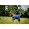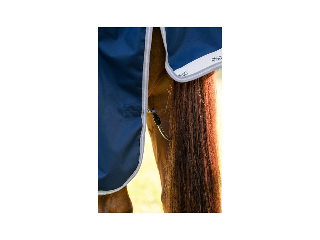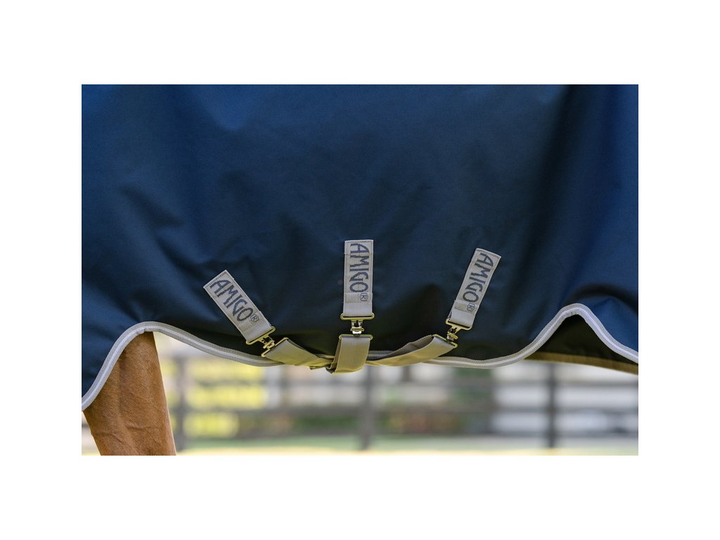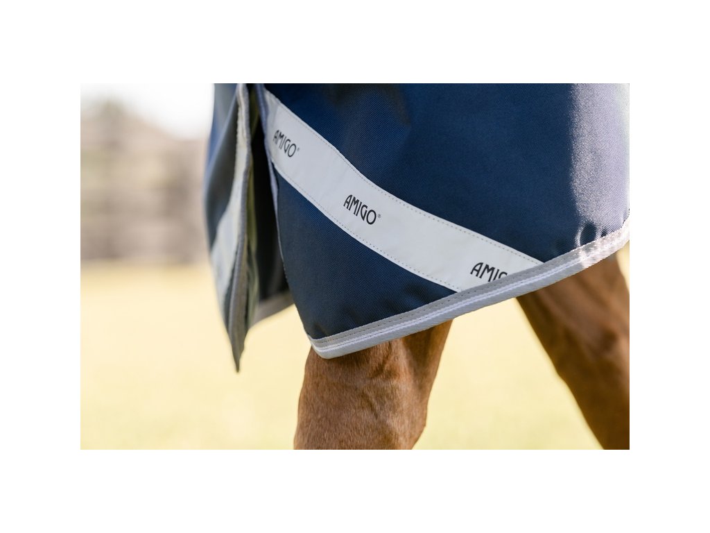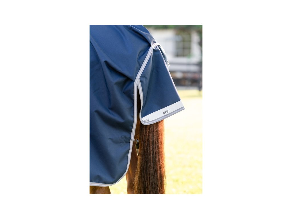 Derka padokowa Amigo dla koni bez ocieplenia (0 g), zapewniająca niezawodną ochronę przy zmiennej pogodzie. Wykonana z wodoodpornego, oddychającego i wytrzymałego materiału poliestrowego 1200D. Gładka poliestrowa podszewka jest delikatna dla skóry, chroni przed otarciami oraz ma właściwości antybakteryjne i antystatyczne. Derka wyposażona jest w zapięcie z przodu na karabińczyki w kształcie litery V, potrójne zapięcie krzyżowe pod brzuchem, pasek na ogon, ochraniacz na ogon oraz wewnętrzne pętelki. Anatomiczny krój w okolicy nóg zapewnia maksymalny komfort podczas ruchu. Posiada również elementy odblaskowe poprawiające widoczność. Derka jest kompatybilna z systemem podpinek. To bardzo popularna i niezawodna derka padokowa od kultowej marki, zaprojektowana, aby zapewnić Twojemu koniowi komfort w ciągle zmieniających się warunkach pogodowych.