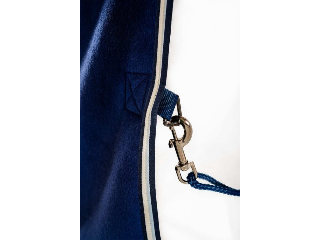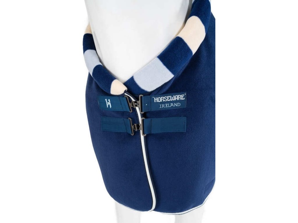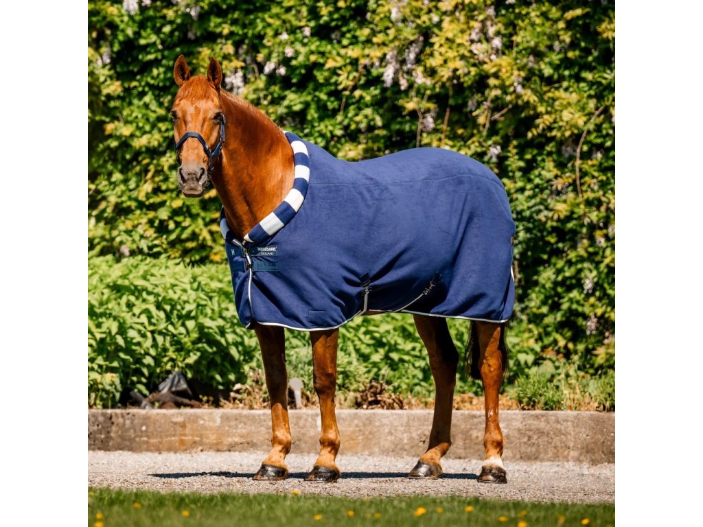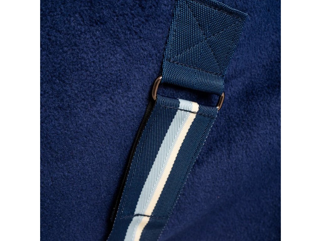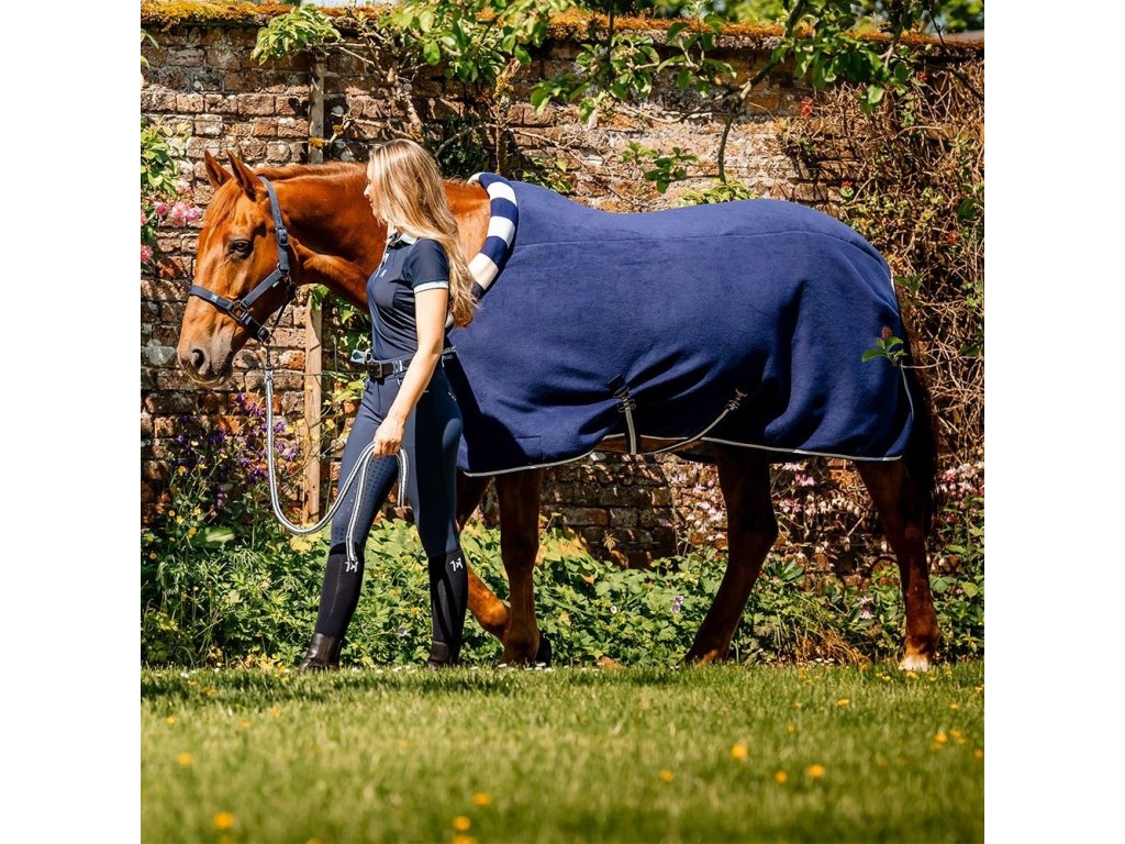 Derka chłodząca Horseware Newmarket została zaprojektowana z myślą o maksymalnym komforcie i funkcjonalności. Wykonana z dwuwarstwowego, oddychającego polaru z wykończeniem zapobiegającym mechaceniu. Polar skutecznie odprowadza wilgoć i pomaga regulować temperaturę, zapewniając komfort koniowi. Podwójne zapięcie z przodu i odpinane pasy pod brzuchem zapewniają bezpieczne dopasowanie, a pas ogonowy pomaga utrzymać derkę na miejscu. Wyściełany kołnierz zapewnia dodatkowy komfort, skutecznie odprowadza wilgoć i pomaga utrzymać ciepło konia. To świetny wybór zarówno do stajni, jak i do transportu.