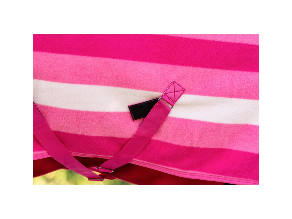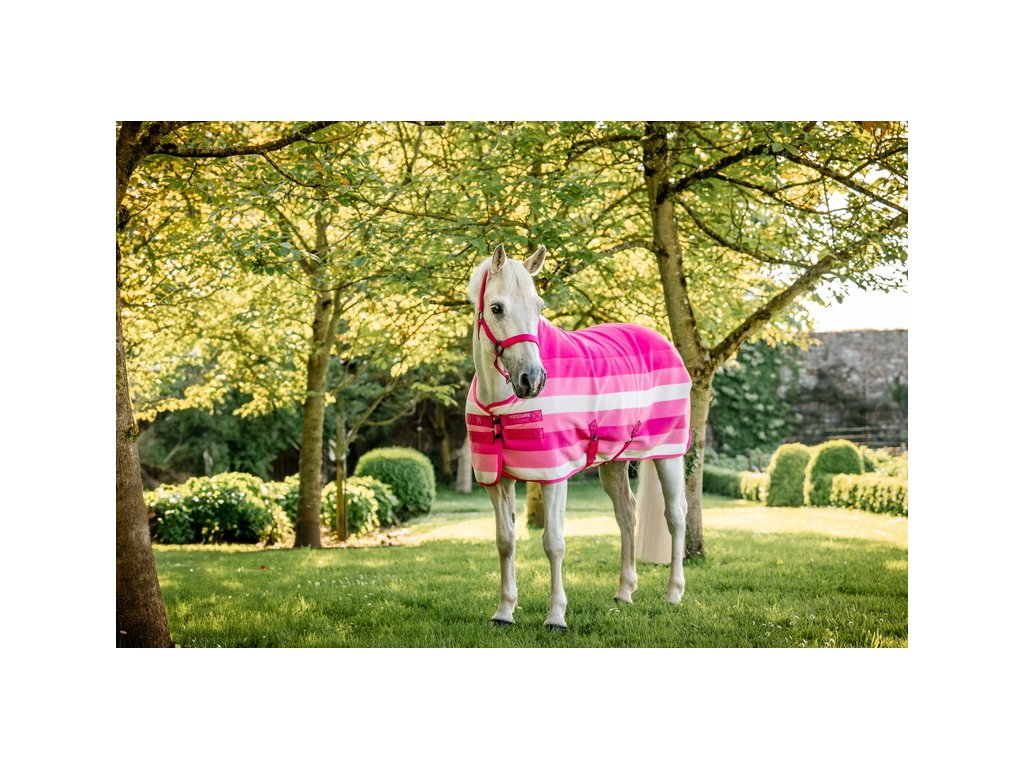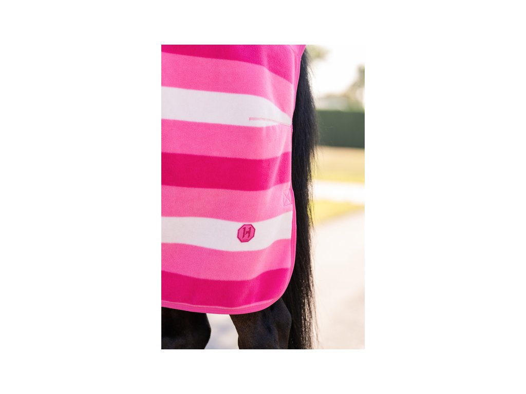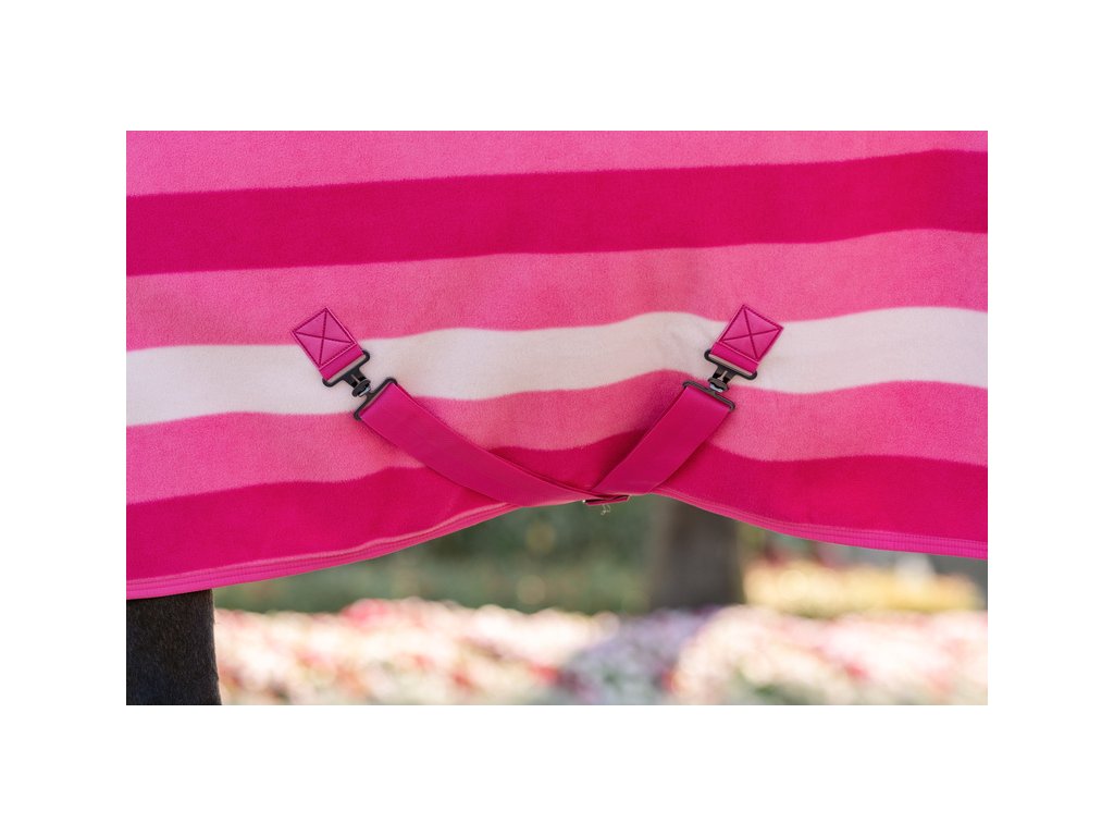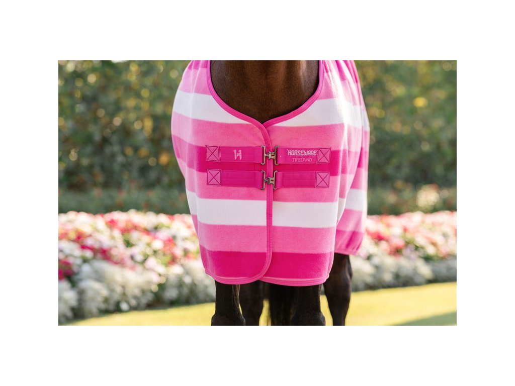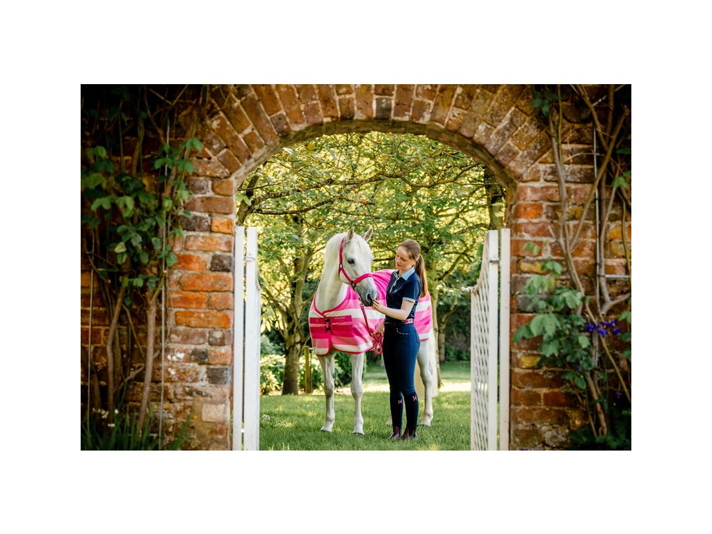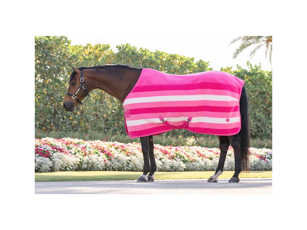 Luksusowa polarowa derka chłodząca Newmarket firmy Horseware z kultowym wzorem w paski. Wykonana z dwuwarstwowego, oddychającego polaru z wykończeniem zapobiegającym mechaceniu. Dzięki wyjątkowej oddychalności i właściwościom odprowadzającym wilgoć, idealnie nadaje się do użytku w stajni, w podróży lub na zawodach. Po treningu polar skutecznie odprowadza wilgoć z ciała konia, umożliwiając stopniowe chłodzenie i utrzymanie komfortowej temperatury. Klasyczny prosty krój, podwójne zapięcie z przodu, pas ogonowy i zdejmowane podwójne zapięcie krzyżowe pod brzuchem dla bezpiecznego mocowania.