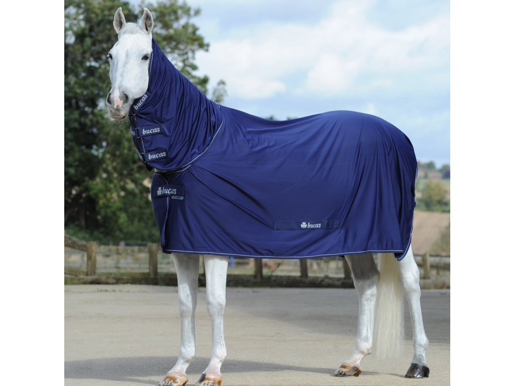 Wysokiej jakości derka chłodząca Power dostarczana z odpinanym ochraniaczem na szyję. Derka oferuje wielofunkcyjne zastosowanie. Służy przede wszystkim jako derka chłodząca, ale może być również używana jako derka transportowa, na zawody lub jako lekka derka stajenna. Wewnętrzna podszewka Stay dry bardzo szybko odprowadza wilgoć, zapewnia szybkie schnięcie sierści i pozostaje sucha. Tylko obszar łopatek jest wyściełany jedwabną podszewką, która szczególnie chroni przed otarciami. Z przodu derki znajduje się proste zapięcie typu T wraz z magnetycznym zatrzaskiem, a całość uzupełnia ochronny rzep. Posiada również pasek ogonowy, marszczony materiał na łopatkach oraz pętelki do mocowania zarówno pasów krzyżowych na brzuchu, jak i pasków na nogi. Derka chłodząca Power posiada punkty mocowania na szyi i D-ringi na tylnych nogach, co pozwala na używanie jej jako wkładki (kompatybilna z derkami zewnętrznymi Bucas)