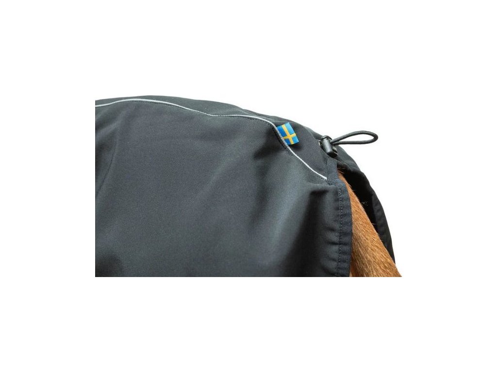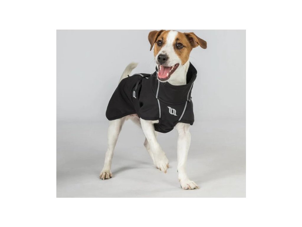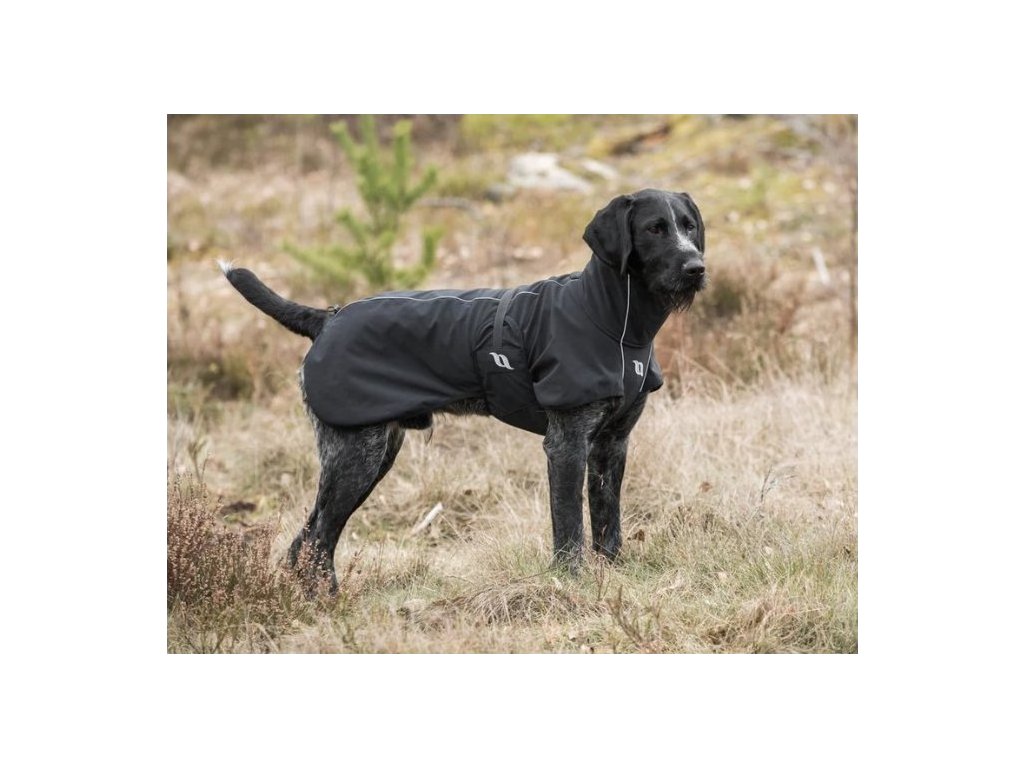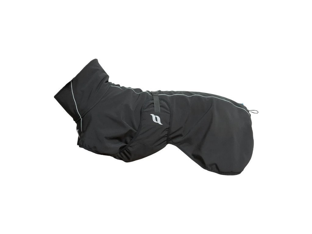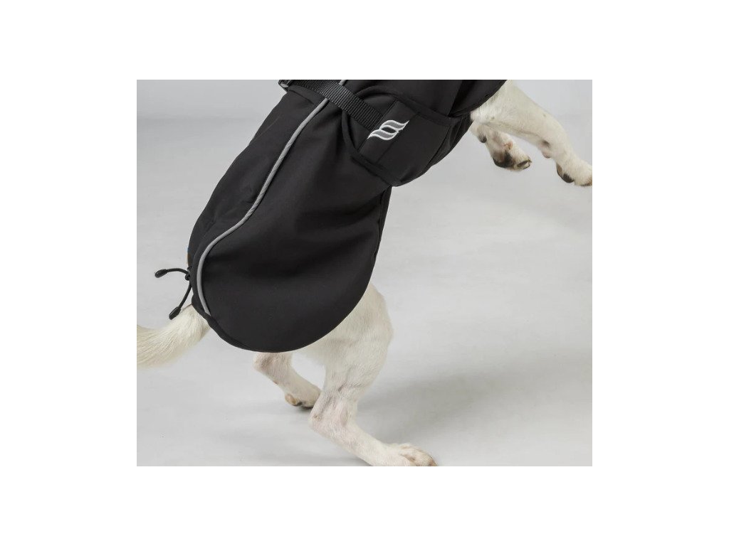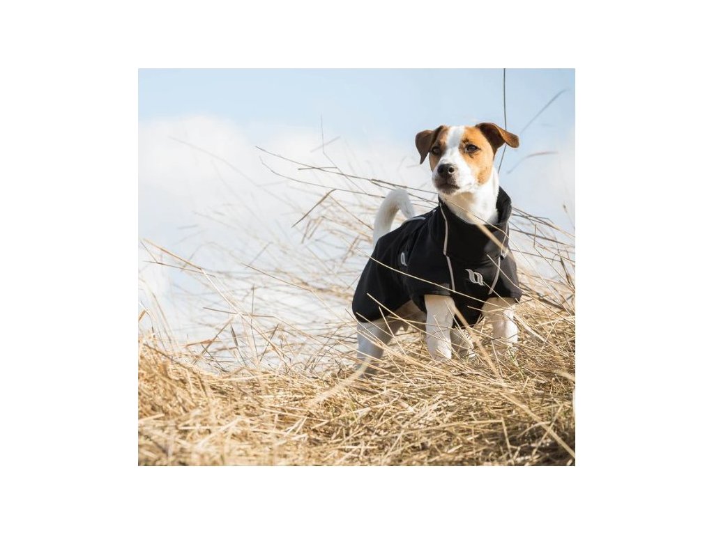 Wysokiej jakości derka dla psa z gładką podszewką wykorzystującą technologię Iontex®. Derka zapewnia idealne dopasowanie, gwarantując swobodę ruchów przednich łap. Idealna dla psów z wysoko osadzonym ogonem. Wyposażona jest w elastyczny sznurek nad ogonem umożliwiający regulację długości. Derka wykonana jest z materiału wodoodpornego i wiatroszczelnego. Posiada wyprofilowany kołnierz ze ściągaczem, który zapobiega wnikaniu deszczu i śniegu. Wnętrze wyściełane jest materiałem Iontex®, który stymuluje krążenie krwi. Pomoże to psu utrzymać optymalną temperaturę i elastyczność mięśni w każdych warunkach pogodowych. Dzięki temu derka jest idealnym wyborem na codzienne przygody! Wyposażona jest również w praktyczny otwór ułatwiający przypięcie smyczy, elementy odblaskowe i logo. W tylnej części derka wyposażona jest w pasek ze ściągaczem i boczne zapięcia na rzepy.