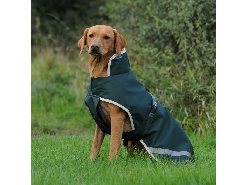 Derka dla psa Greenline Turnout zapewnia doskonały komfort termiczny Twojemu psu dzięki ociepleniu 50 g. To jest niesamowita derka Greenline Turnout, która jest przyjazna dla środowiska. Firma Bucas opracowała nową gamę ekologicznych derek, które łączą doskonałą jakość i design marki Bucas z wykorzystaniem materiałów pochodzących z recyklingu. Derki Greenline Turnout oferują wszystkie wspaniałe funkcje, których oczekujesz od firmy Bucas, dając jednocześnie pewność, że derka została wyprodukowana w sposób przyjazny dla środowiska i zrównoważony. Materiał zewnętrzny derki jest wykonany z bardzo trwałego, wodoodpornego i oddychającego materiału Rip-Stop (wytrzymałość 600D), który został pozyskany z przetworzonych plastikowych butelek. Derka oferuje szerszy krój w okolicy szyi, co jest wygodne dla różnych ras psów lub różnych rodzajów obroży. W tym obszarze znajduje się również otwór, przez który można przełożyć smycz. Wyposażona w szerokie, regulowane zapięcie pod brzuchem, elastyczne paski na nogi i elementy odblaskowe dla zwiększenia bezpieczeństwa.