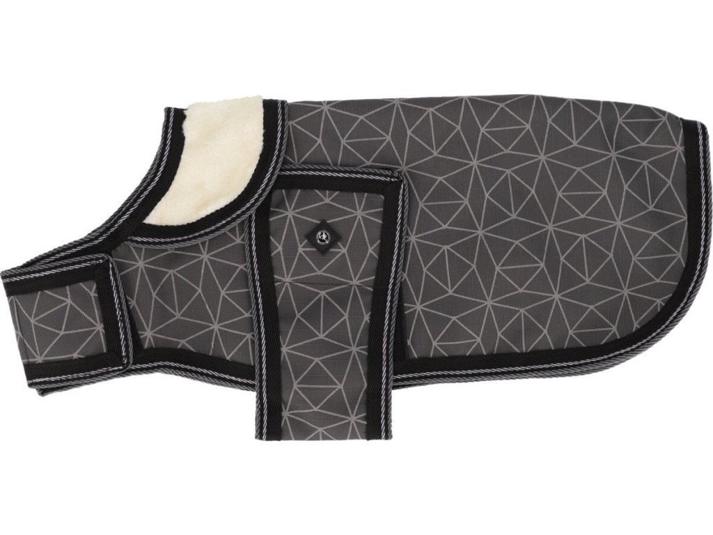 Wysokiej jakości derka dla psa z izolacją 100 g, zapewniająca ciepło w chłodne dni i w różnych warunkach pogodowych. Materiał zewnętrzny jest wodoodporny o wytrzymałości 1200D i słupie wody 3000 mm/m², a jednocześnie oddychający dla komfortu Twojego psa. Derka jest wyposażona w przednie i brzuszne zapięcia na rzepy oraz elastyczne sznurki na tylnych nogach, aby zapewnić stabilne dopasowanie. Posiada również praktyczny otwór na smycz i ciepły polarowy kołnierz.