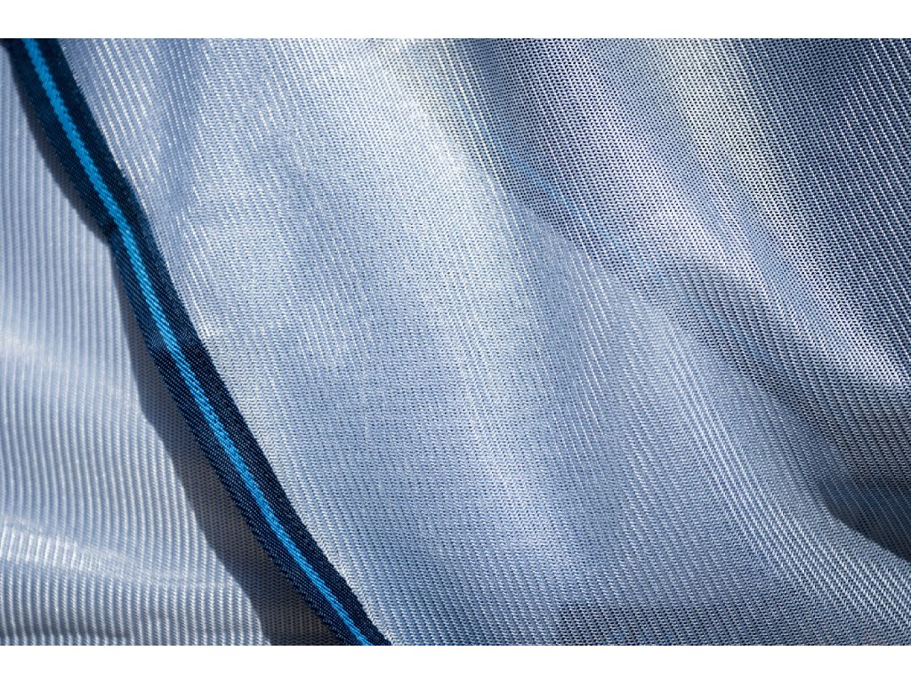 Derka Amigo Bug Plus Buster, która zapewnia skuteczną ochronę przed owadami i promieniowaniem UV. Dostarczana wraz z odpinanym elementem na szyję. Ten model zapewnia doskonałą wydajność bez kompromisów. Materiał zewnętrzny wykonany jest z wytrzymałego, lekkiego poliestru siatkowego. Wyposażona w podwójne zapięcie z przodu, krzyżowe zapięcie pod brzuchem, przedłużony ochraniacz na ogon i pasek na ogon. Anatomiczny krój w okolicy nóg zapewnia maksymalną swobodę ruchów. Podszewka w okolicy łopatek i grzywy chroni przed otarciami.
