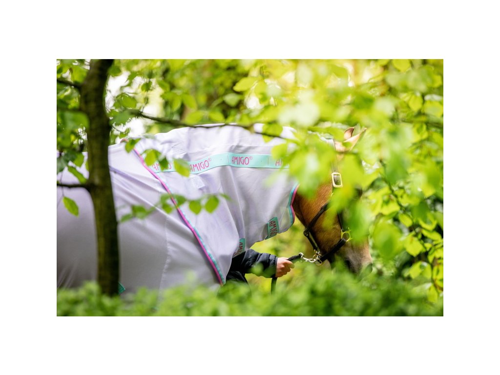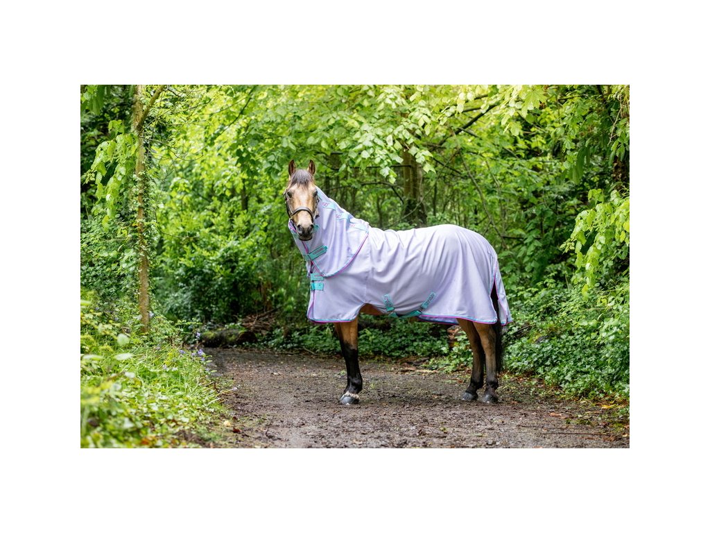 Wysokiej jakości derka siatkowa dostępna w rozmiarach dla kucyków. Dostarczana z odpinanym elementem na szyję. Derka zapewnia skuteczną ochronę przed owadami i 65% ochronę przed promieniowaniem UV. Wykonana z oddychającej tkaniny poliestrowej, która jest miękka, chłonna i bardzo wytrzymała. Co ważne, odbija światło słoneczne. Derka jest wyposażona w podwójne zapięcie z przodu na klamry, zapięcie krzyżowe pod brzuchem oraz przedłużony ochraniacz na ogon z paskiem ogonowym. Co więcej, anatomiczny krój w okolicy nóg zapewnia maksymalną swobodę ruchów. Jedwabista podszewka chroni przed otarciami.