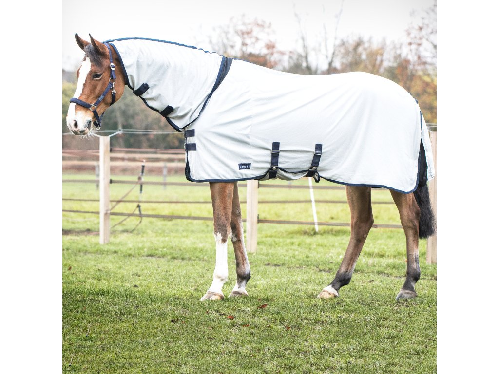 Wysokiej jakości oddychająca derka, która zapobiega wnikaniu owadów i zmniejsza ryzyko egzemy. Zawiera elementy na szyję i brzuch. Derka wykonana jest z lekkiego materiału poliestrowego. Drobna, specjalna struktura splotu, podszyta gładką satynową podszewką na grzywie, klatce piersiowej i kłębie zapewnia komfort i swobodę ruchów bez ograniczeń. Zapięcie na klatce piersiowej z dwoma pasami typu T z osłoną i zapięcie na brzuchu z regulowanymi elastycznymi pasami. Pasek na ogon. Derka dostępna jest w klasycznych rozmiarach 115 cm - 165 cm oraz w rozmiarach rozszerzonych 128 cm - 158 cm, które są odpowiednie dla koni o bardziej umięśnionej szyi i łopatkach.