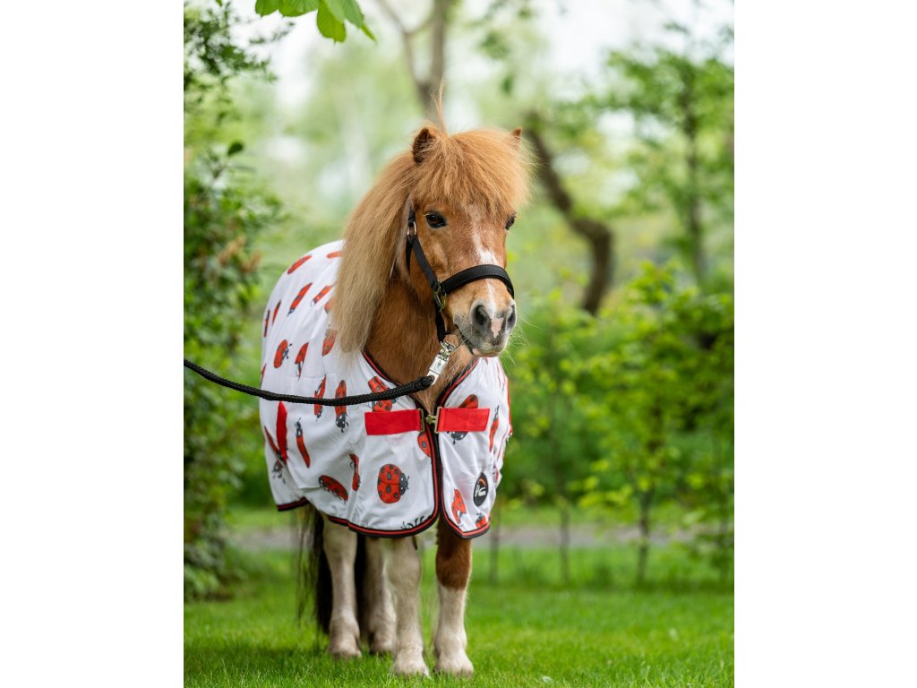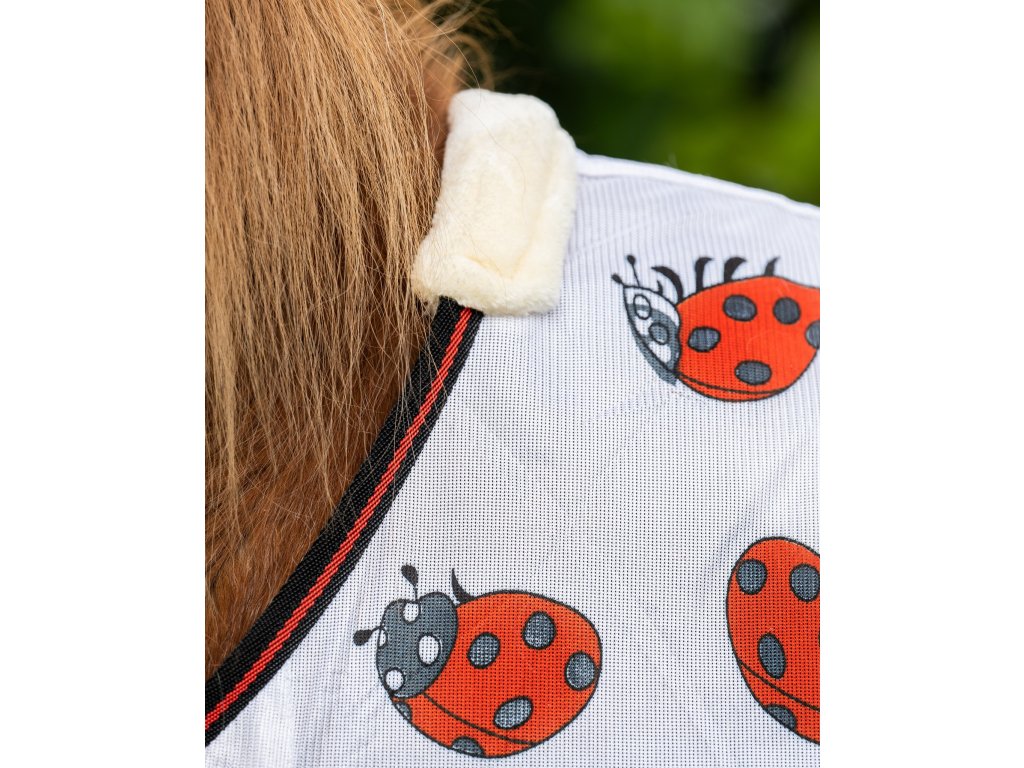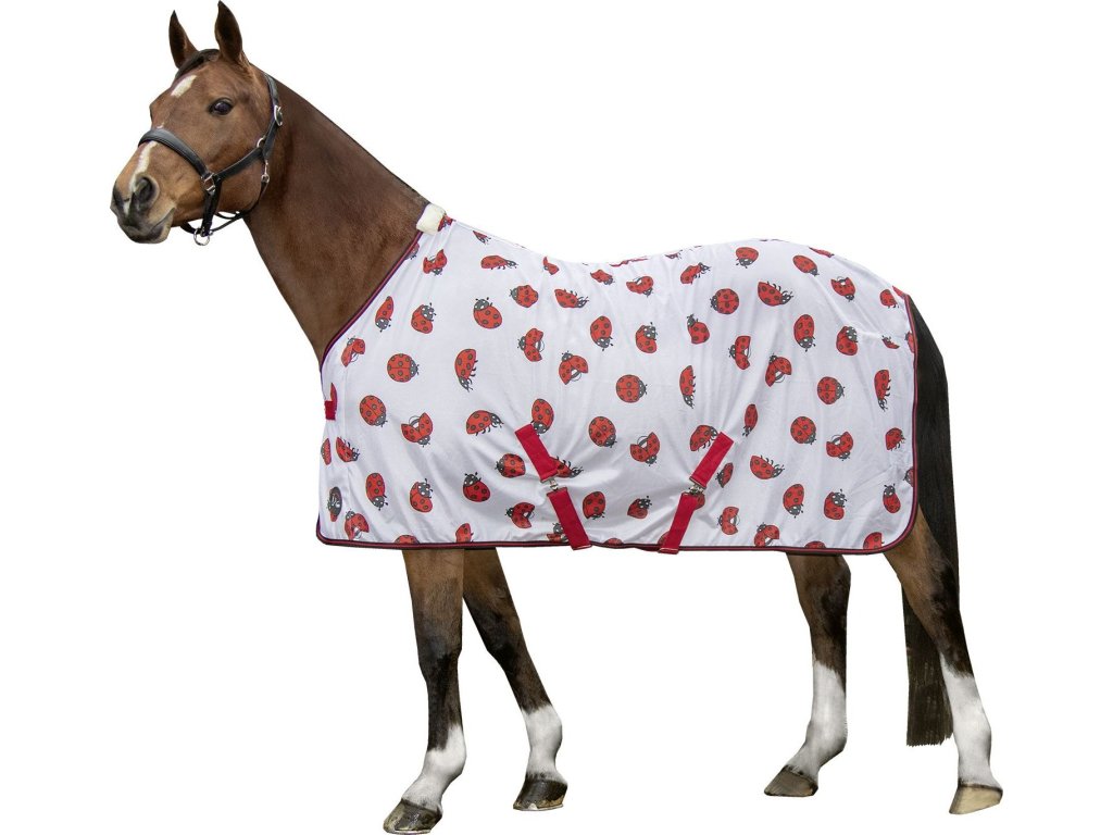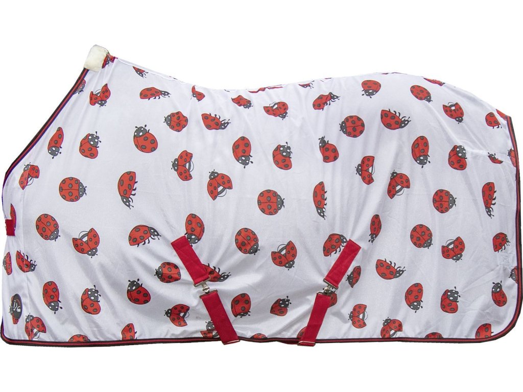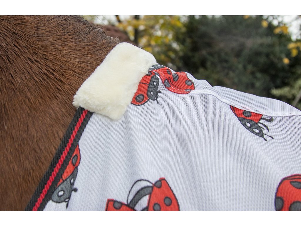 Wysokiej jakości derka przeciw owadom firmy HKM. Derka jest oddychająca i chroni konie przed kąsającymi owadami i muchami. Derka jest wyposażona w pasy pod brzuchem, pas pod ogonem i proste zapięcie z przodu. Derka jest dostępna w wielu rozmiarach. Kłąb jest wyściełany skórą owczą, aby zapobiec otarciom.