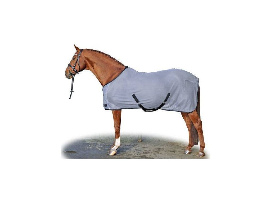 Siatkowa derka przeciw owadom z zapięciem krzyżowym pod brzuchem i paskiem na ogon. Aby zapewnić jeszcze lepszą ochronę przed owadami, można kupić maskę przeciw muchom w celu ochrony głowy konia . Derka jest wykonana z elastycznego materiału i można ją prać w pralce w temperaturze 30°C.