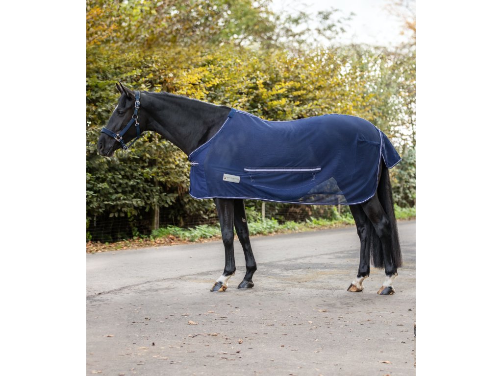 Siatkowa derka przeciw owadom z osłoną na brzuch. Posiada zapięcie przednie "Triplex". Zabezpieczenie brzucha można łatwo odpiąć. Derka NIE jest wyposażona w pasy krzyżowe. Wyposażona jest również w kółka do mocowania kaptura, ochraniacz na ogon i miękką wyściółkę w kłębie. Dostępna w wielu kolorach.