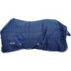 Termiczna derka stajenna z poziomym pikowaniem, wykonana z oddychającego materiału. Ocieplenie 250 g. Wyposażona w podwójne zapięcie z przodu, krzyżowe zapięcie pod brzuchem, pasy między tylnymi nogami i osłonę ogona. Dostępna w kolorze granatowym i rozmiarach od 90 cm do 165 cm.