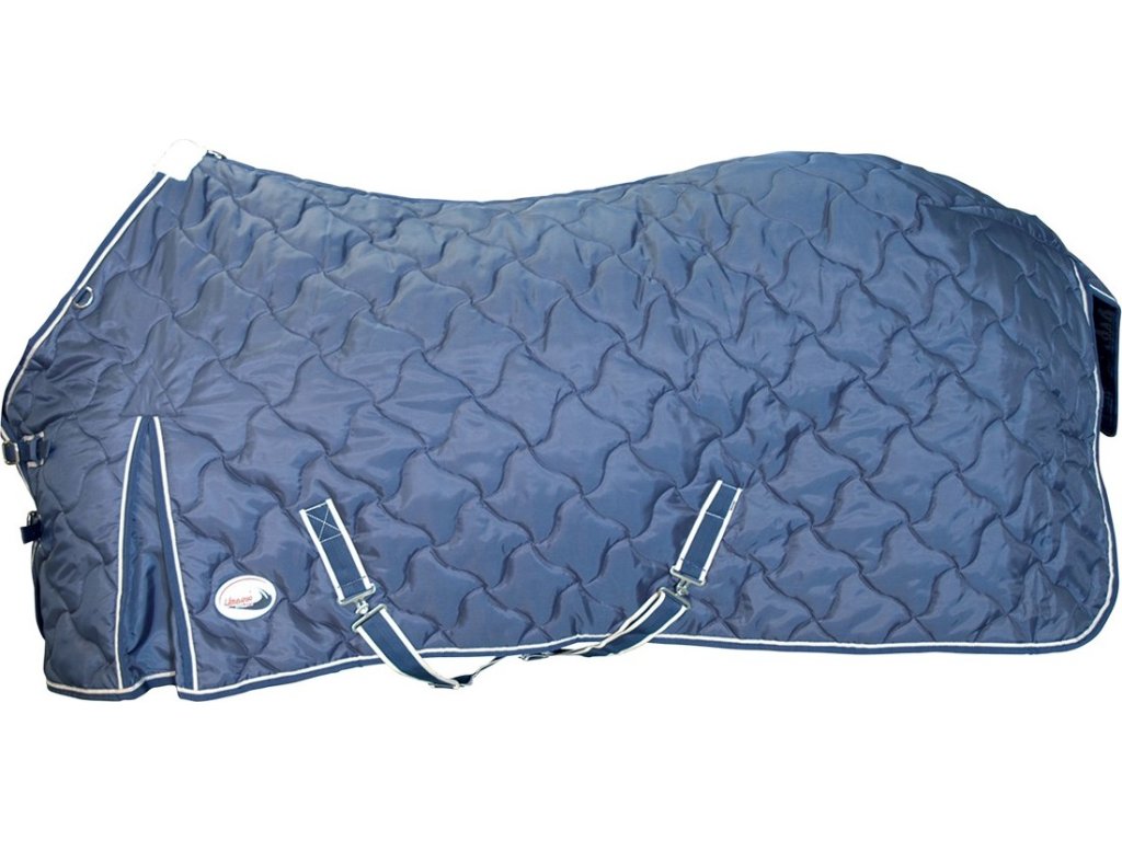 Pikowana derka stajenna termo wykonana z wysokiej jakości materiału. Derka ma ocieplenie 250 g. Wyposażona w podwójne zapięcie z przodu, krzyżowe zapięcie pod brzuchem i ochraniacz na ogon. Wyposażona w kliny na łopatkach dla większej swobody ruchów. Kaptur na szyję można dokupić osobno do derki. Dostępne również w kolorze czarnym. Dostępna w rozmiarach od 90 cm do 165 cm.