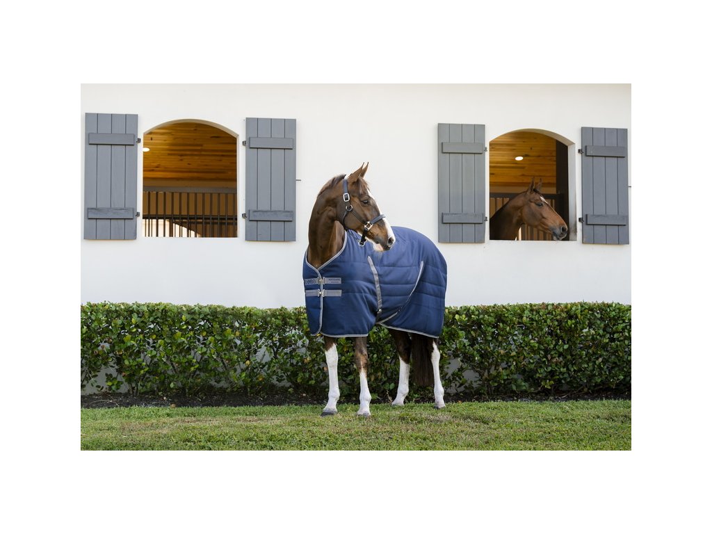 Derka stajenna Rambo, gładka podszewka, 400 g, navy/thunderstorm grey & silver