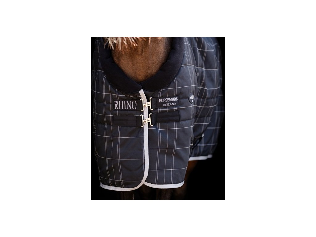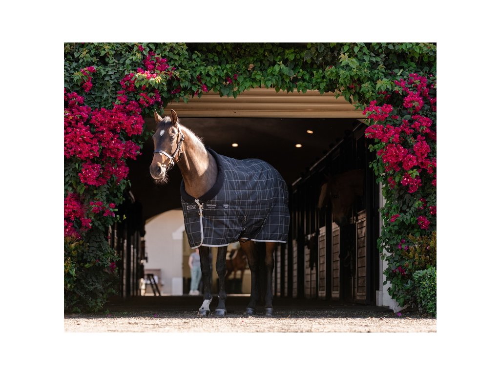 Derka stajenna Rhino Original Pony Vari Layer®, 250 g, black/grey/white check & grey