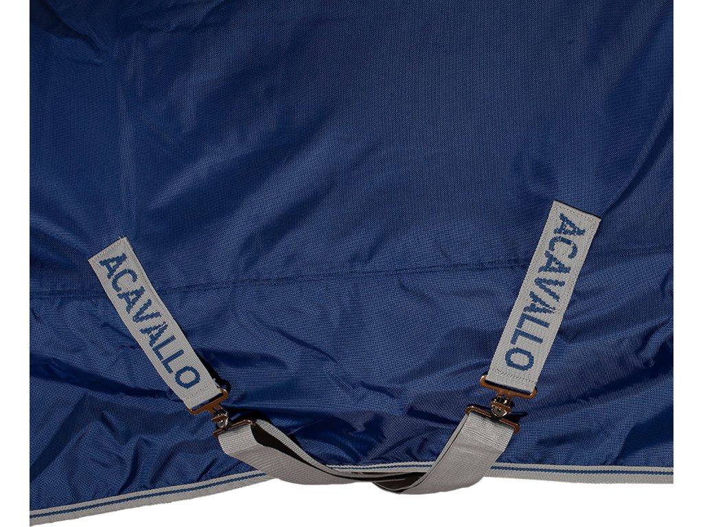 Wysokiej jakości wodoodporna derka padokowa wykonana z tkaniny 840D, która jest bardzo odporna na rozdarcia. Derka jest doskonale oddychająca, chroni konia przed wiatrem i deszczem. Izolacja 400 g, odpowiednia na chłodny sezon zimowy. Wyposażona w podwójne zapięcie z przodu zabezpieczone rzepem, krzyżowe zapięcie pod brzuchem, elastyczne paski pod tylnymi nogami i szeroką osłonę ogona. Wyposażona w kliny na łopatkach dla maksymalnej swobody ruchów. Kaptur na szyję można dokupić osobno do derki. Dostępne rozmiary 110 cm – 165 cm.