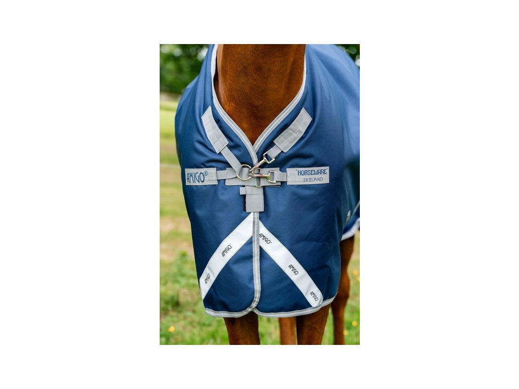 Derka padokowa Amigo dla koni z ociepleniem 100 g, zapewniająca niezawodną ochronę w zimne dni. Wykonana z wodoodpornego, oddychającego i wytrzymałego materiału poliestrowego 1200D. Gładka poliestrowa podszewka jest delikatna dla skóry, chroni przed otarciami oraz ma właściwości antybakteryjne i antystatyczne. Derka wyposażona jest w zapięcie z przodu na karabińczyki w kształcie litery V, potrójne zapięcie krzyżowe pod brzuchem, pasek na ogon, ochraniacz na ogon oraz wewnętrzne pętelki. Anatomiczny krój w okolicy nóg zapewnia maksymalny komfort podczas ruchu. Posiada również elementy odblaskowe poprawiające widoczność. Derka jest kompatybilna z systemem podpinek. To bardzo popularna i niezawodna derka padokowa od kultowej marki, zaprojektowana, aby zapewnić Twojemu koniowi komfort w ciągle zmieniających się warunkach pogodowych.