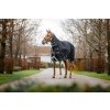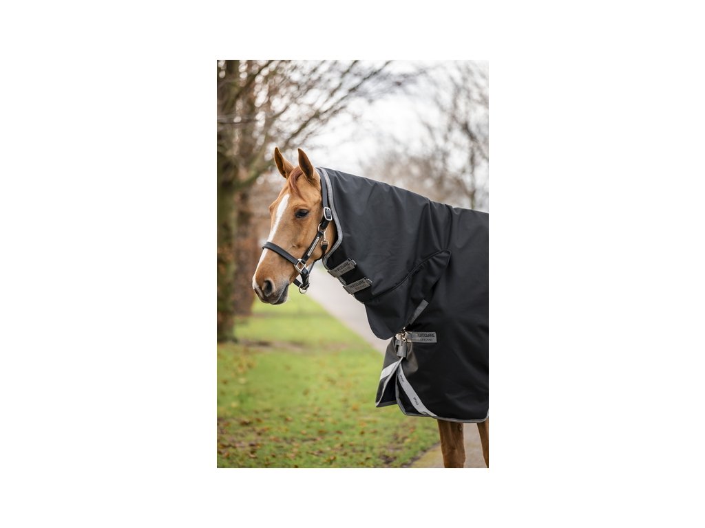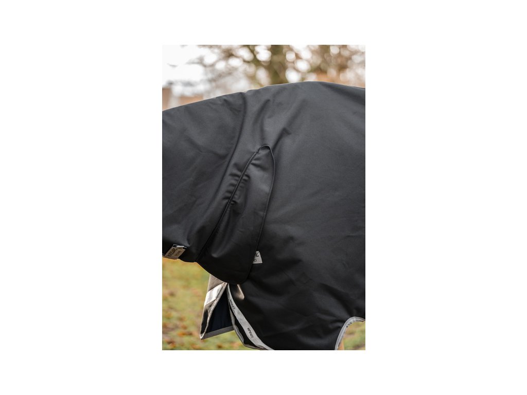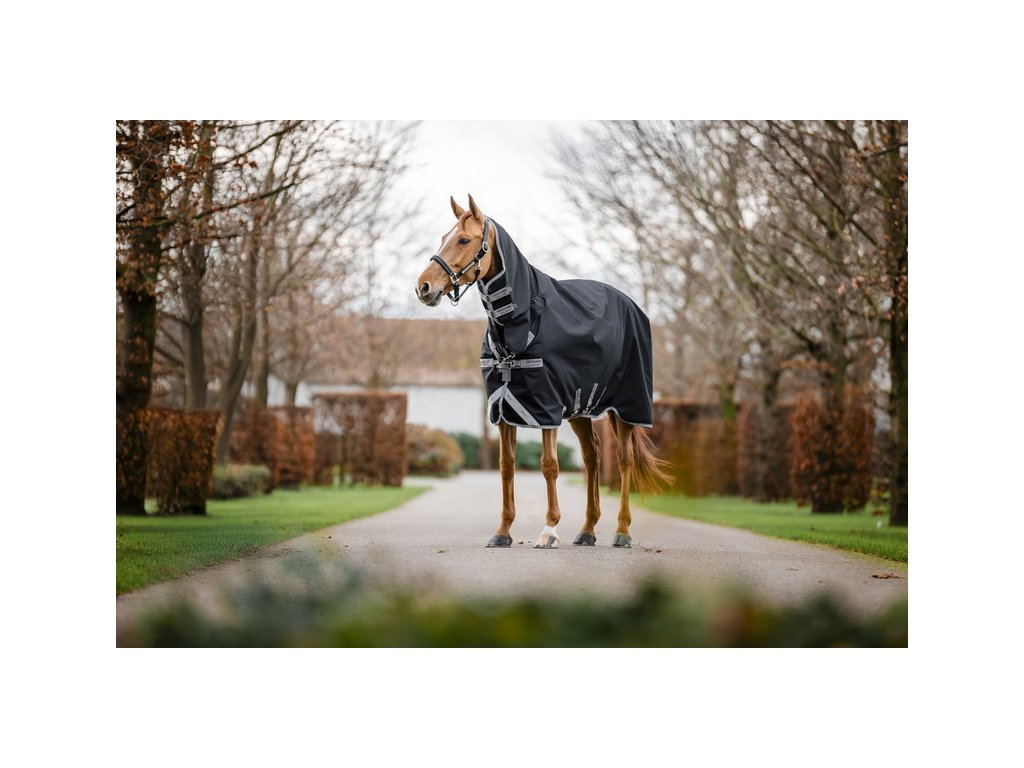 Wysokiej jakości wodoodporna derka Amigo z ociepleniem (50 g) i zintegrowanym kapturem (nieodpinanym). Derka jest odpowiednia dla koni o wąskich ramionach i wysokim kłębie. Wykonana z wysoce wytrzymałego materiału poliestrowego 1200D, który jest wodoodporny, a jednocześnie oddychający. Wyściółka z gładkiej podszewki poliestrowej, która jest delikatna dla skóry i chroni przed otarciami. Podszewka zapewnia również właściwości antybakteryjne i antystatyczne. Posiada również proste zapięcie na karabińczyk w kształcie litery V z przodu, potrójne zapięcie krzyżowe pod brzuchem, pas ogonowy, osłonę ogona i paski wewnętrzne. Anatomiczny krój w okolicy nóg zapewnia jeszcze większą swobodę ruchów. Wyposażona w elementy odblaskowe dla większego bezpieczeństwa.