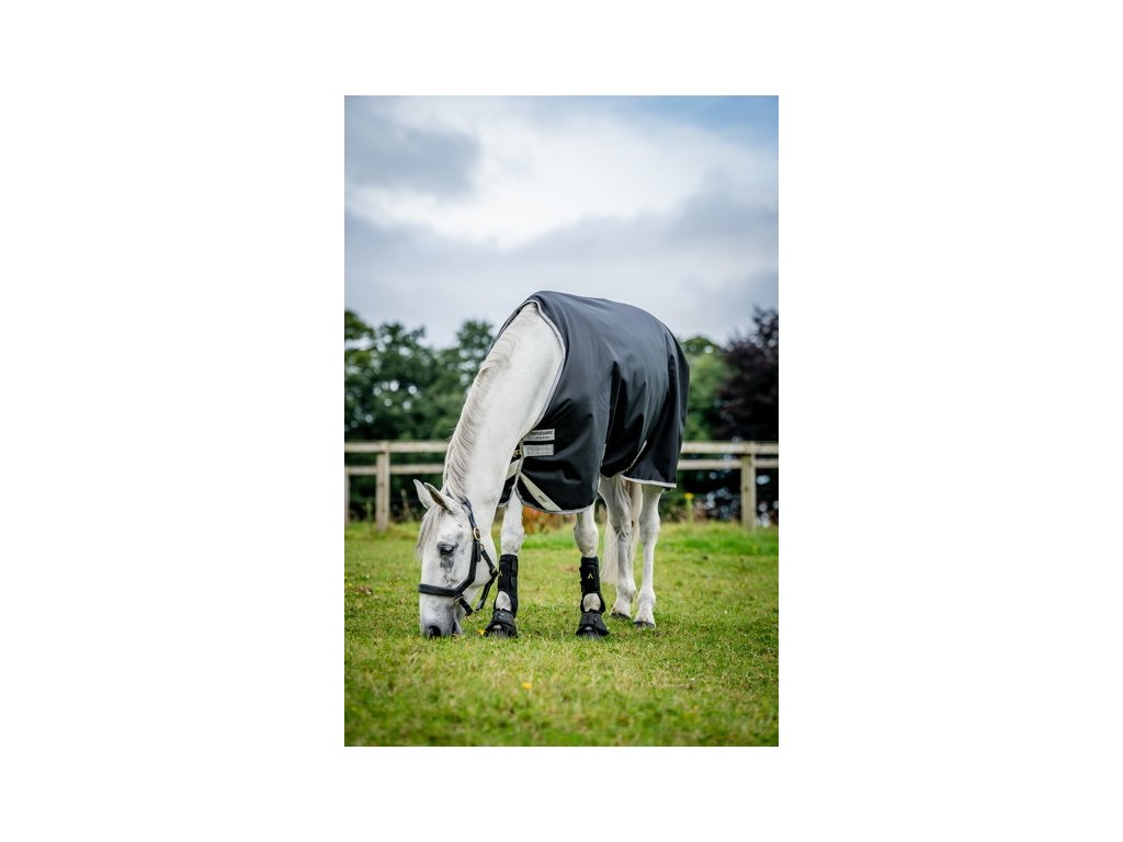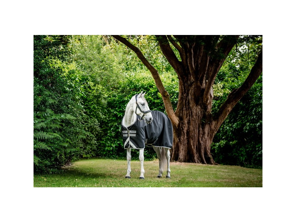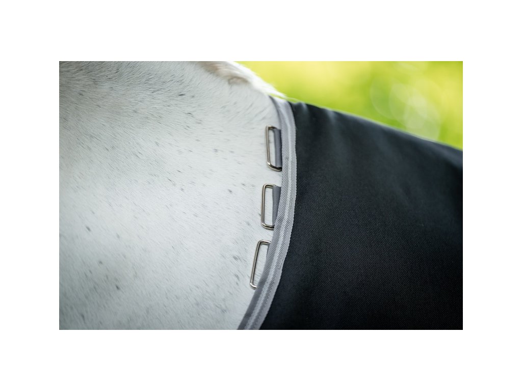 Wysokiej jakości ocieplana derka padokowa wykonana z bardzo wytrzymałego, mocnego, wodoodpornego i oddychającego materiału. Wytrzymałość 1200 D, z ociepleniem 250 g. Zapewnia maksymalny komfort i bezpieczeństwo dla konia. Wyposażona w proste podwójne zapięcie na sprzączki z przodu, podwójne zapięcie krzyżowe pod brzuchem oraz pasek na ogon wraz z ochraniaczem.Anatomiczne wycięcie w okolicy nóg zapewnia swobodę ruchów. Elementy odblaskowe zapewniają lepszą widoczność w zmierzchu lub przy złej pogodzie. Kompatybilna z systemem liner. Element na szyję można zakupić osobno.