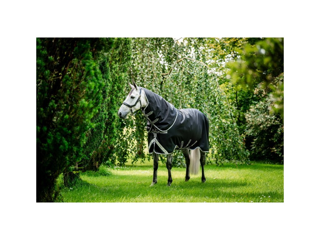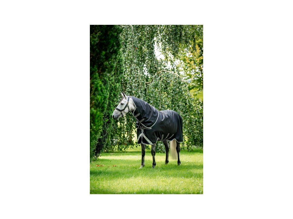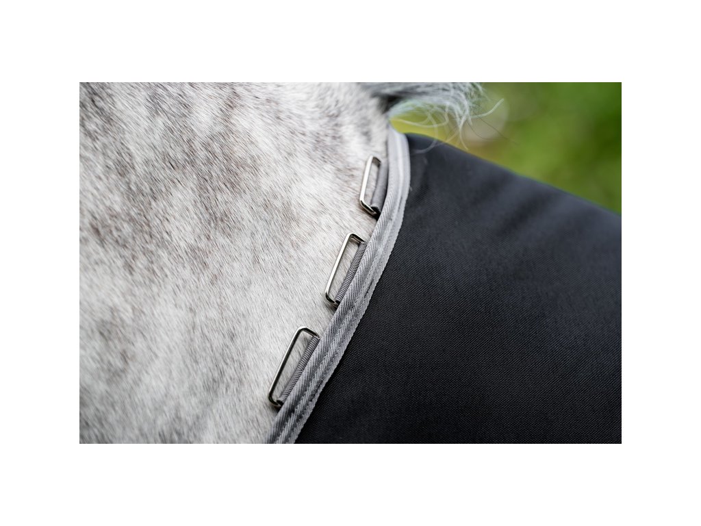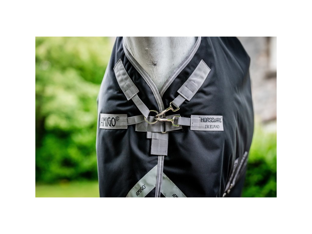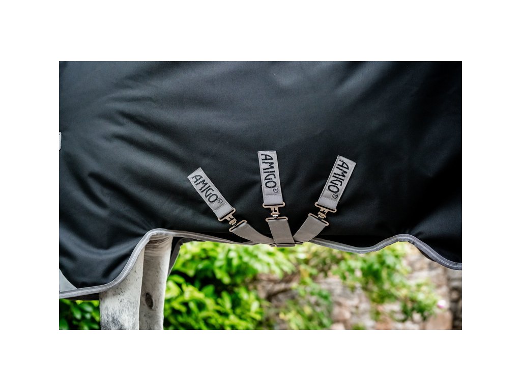 Wysokiej jakości i jedna z najlepiej sprzedających się derek Amigo, z wysoką izolacją 250 g. Dostarczana z odpinanym kapturem, z izolacją 150 g. Wykonana z bardzo wytrzymałego materiału poliestrowego (wytrzymałość 1200D), który jest wodoodporny i nadal oddychający. Wyściełana gładką poliestrową podszewką, która jest delikatna dla skóry i chroni przed otarciami. Podszewka oferuje również właściwości antybakteryjne i antystatyczne. Derka posiada specjalny krój Surefit w okolicy szyi, który zapewnia maksymalny komfort i swobodę ruchów. Ponadto posiada przednie proste zapięcie z karabińczykami w kształcie litery V, potrójne zapięcie krzyżowe pod brzuchem, pasek na ogon i osłonę ogona. Anatomiczny krój w okolicy nóg zapewnia jeszcze większą swobodę ruchów. Wyposażona w elementy odblaskowe dla większego bezpieczeństwa. Kompatybilna z systemem liner.