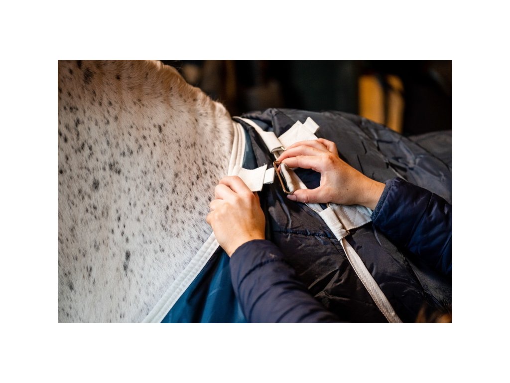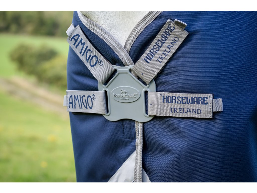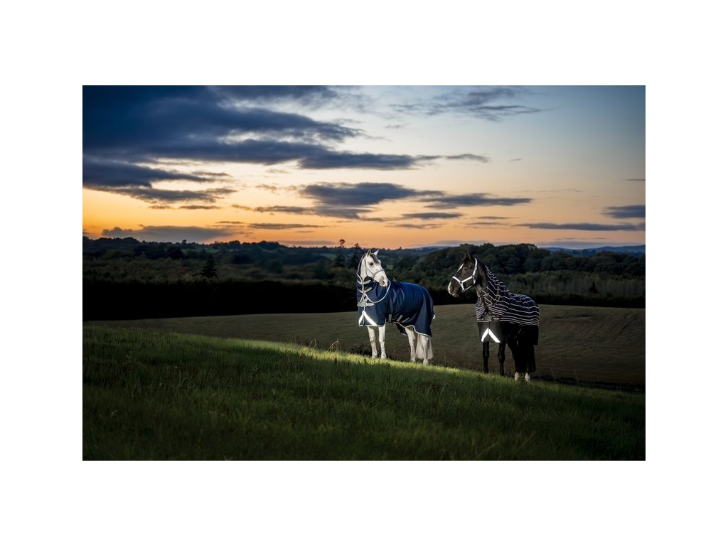 Derka Fieldsafe Plus Amigo z ociepleniem 100 g i odpinanym kołnierzem to innowacyjny produkt zaprojektowany z myślą o maksymalnym bezpieczeństwie konia. Wykonana z wysokiej jakości oddychającego materiału poliestrowego o wytrzymałości 1200D. Wewnętrzna podszewka jest antybakteryjna i antystatyczna, dzięki czemu sierść pozostaje błyszcząca. Główne cechy derki to potrójne zapięcie na krzyż pod brzuchem, zapięcie tarczowe z przodu, pasek PVC pod ogonem oraz elementy odblaskowe , które ułatwiają dostrzeżenie konia nawet w całkowitej ciemności. Innowacyjny system Fieldsafe na pasie brzusznym obejmuje paski, które zwalniają się, gdy obciążenie przekroczy 100 kg, zapewniając Twojemu koniowi dodatkowy poziom bezpieczeństwa, a Tobie spokój ducha. Zapasowe pętelki plastikowe można zakupić osobno. Kompatybilna z systemem liner.
