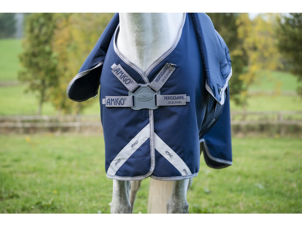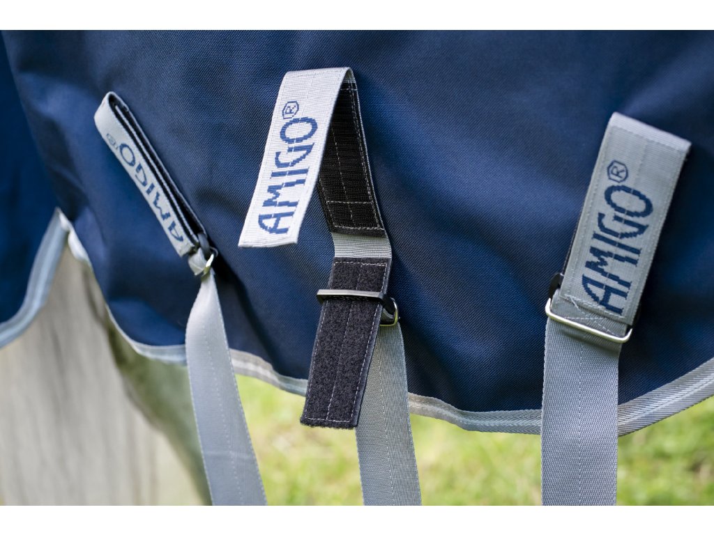 Derka padokowa Fieldsafe Plus Amigo z izolacją 250 g i odpinanym kołnierzem to innowacyjny produkt zaprojektowany z myślą o maksymalnym bezpieczeństwie konia. Wykonana z wysokiej jakości oddychającego materiału poliestrowego o wytrzymałości 1200D. Wewnętrzna podszewka jest antybakteryjna i antystatyczna, dzięki czemu sierść pozostaje błyszcząca. Główne cechy derki to potrójne zapięcie na krzyż pod brzuchem, zapięcie tarczowe z przodu, pasek PVC pod ogonem oraz elementy odblaskowe , które ułatwiają dostrzeżenie konia nawet w całkowitej ciemności. Innowacyjny system Fieldsafe na pasie brzusznym obejmuje paski, które zwalniają się, gdy obciążenie przekroczy 100 kg, zapewniając Twojemu koniowi dodatkowy poziom bezpieczeństwa, a Tobie spokój ducha. Zapasowe pętelki plastikowe można zakupić osobno. Kompatybilna z systemem liner.