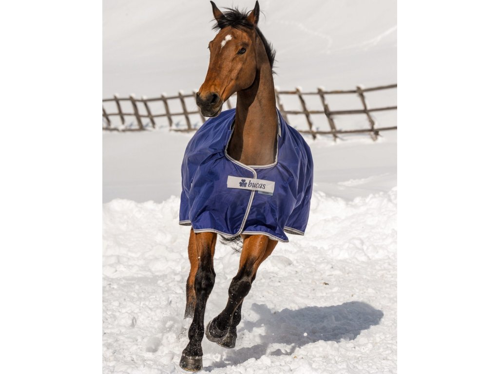 Aby zwiększyć izolację, derkę można warstwować z derkami producenta Bucas (podpinkami Bucas Quilts lub wybranymi derkami chłodzącymi Bucas). Zapinanie jest możliwe dzięki zapięciom na rzepy.