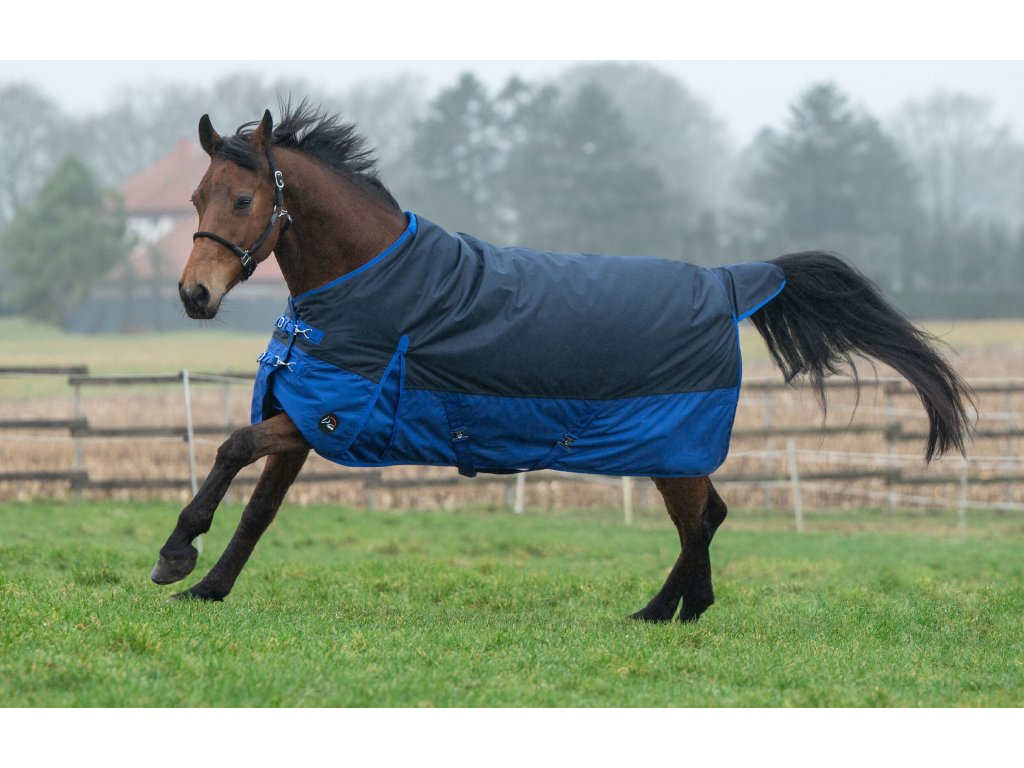 Wodoodporna, wiatroodporna i oddychająca derka wykonana z 600D materiału odpornego na rozdarcia. Ocieplana ciepłą podszewką polarową. Wyposażona w regulowane podwójne zapięcie z przodu i krzyżowe zapięcie pod brzuchem. Wyposażona w osłonę ogona i pasek pod ogon. Można prać w pralce w temperaturze 30°C i suszyć w suszarce bębnowej.