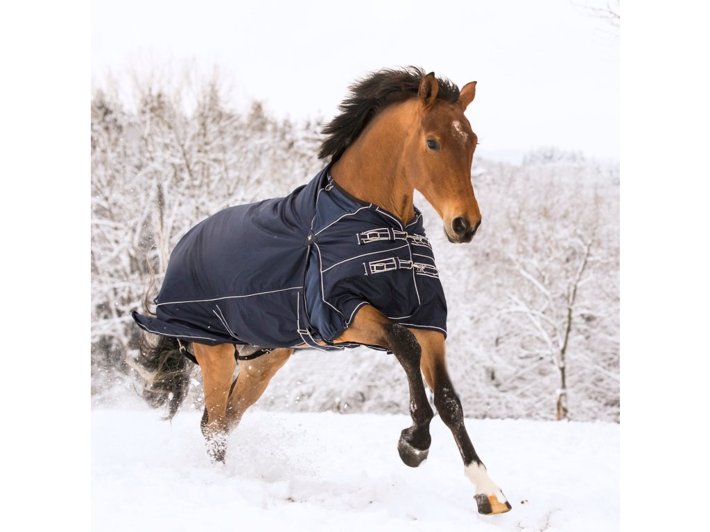 Derka padokowa, wodoodporna i oddychająca, zapewniająca ciepło w chłodne, deszczowe dni. Wypełnienie termiczne 50 g/m², wytrzymałość 1200 D, wodoodporność 3000 mm. Posiada podwójne zapięcie z przodu (Triplex) z klamrami i rzepami, krzyżowe zapięcie pod brzuchem i paski między nogami. Derka posiada również osłonę ogona, miękkie podszycie na kłębie oraz pierścienie do mocowania elementu na szyję. Dostarczana w praktycznej torbie. Kompatybilna z systemem "Clip in" (dodatkowe derki spodnie o dowolnym poziomie ocieplenia można dokupić, znajdziesz je TUTAJ).