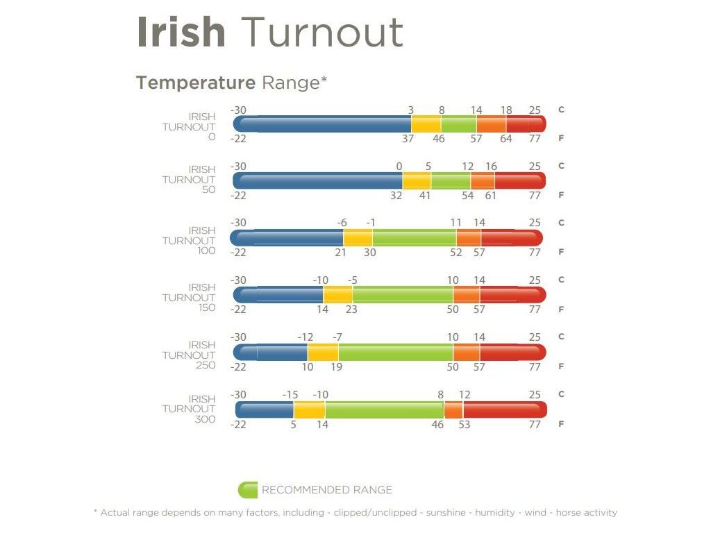 Zakres temperatur derki jest przybliżony. Zawsze należy indywidualnie dopasować ocieplenie dla każdego konia (ze względu na wiek, sierść, obciążenie sportowe itp.).