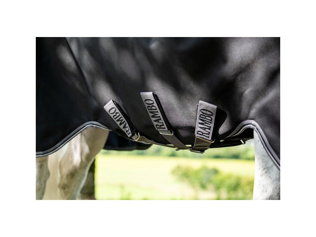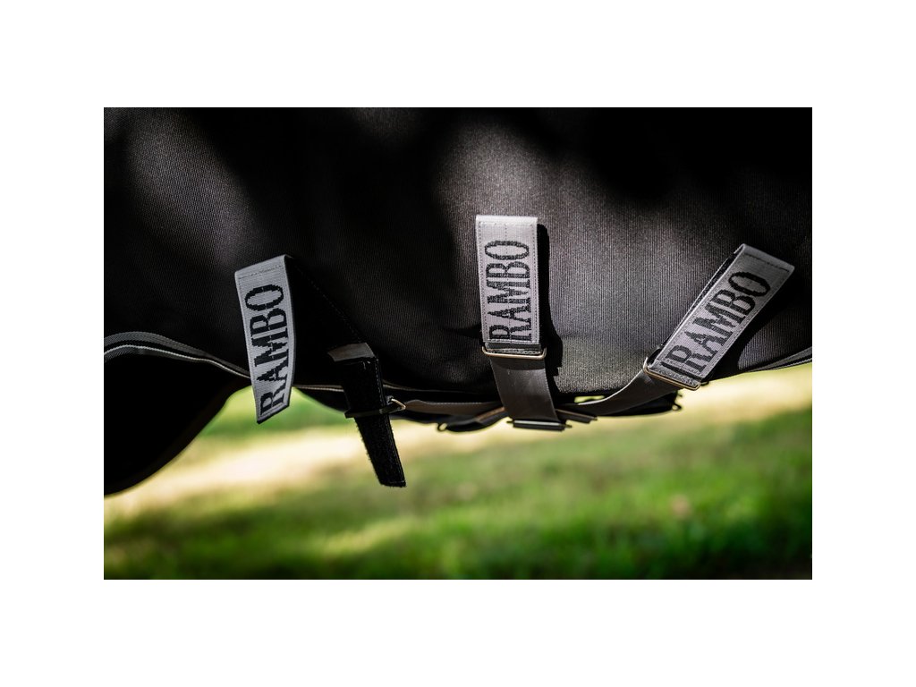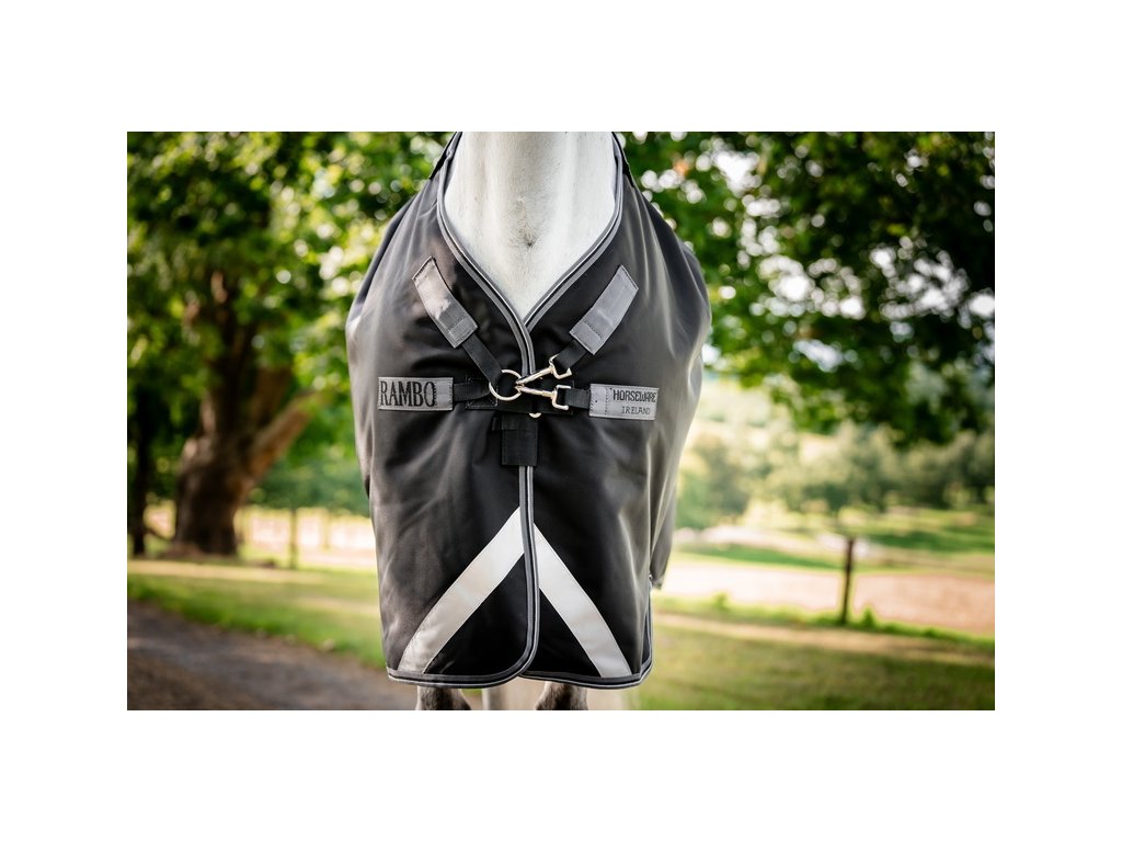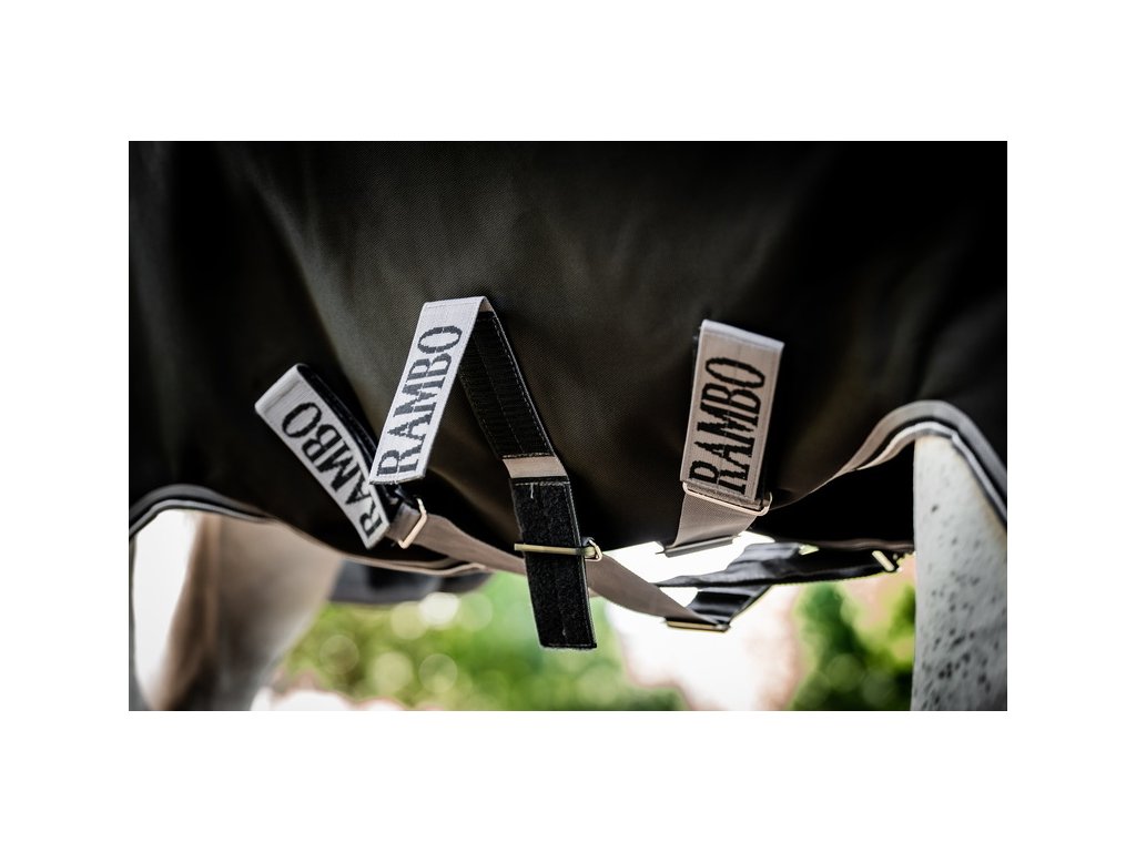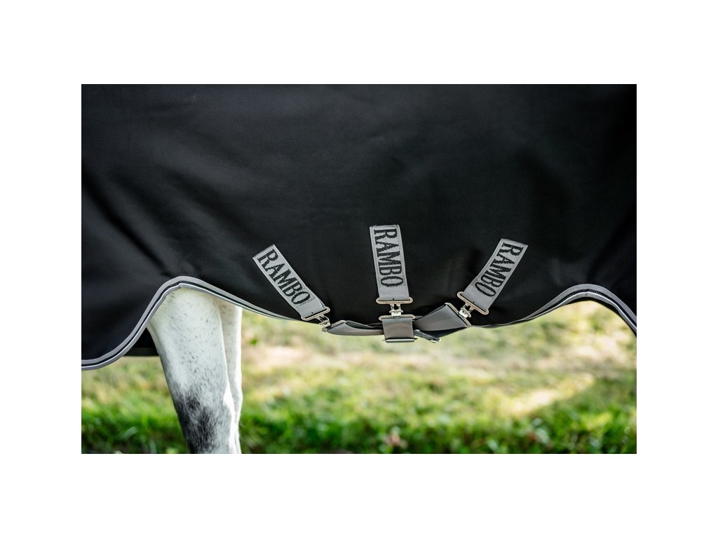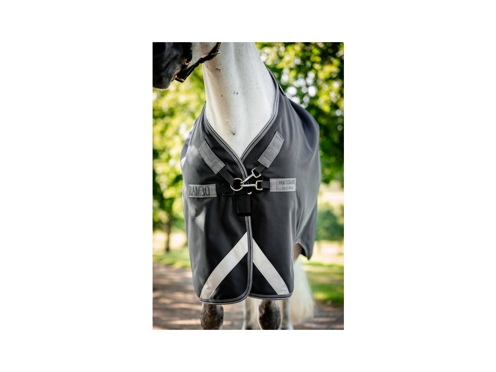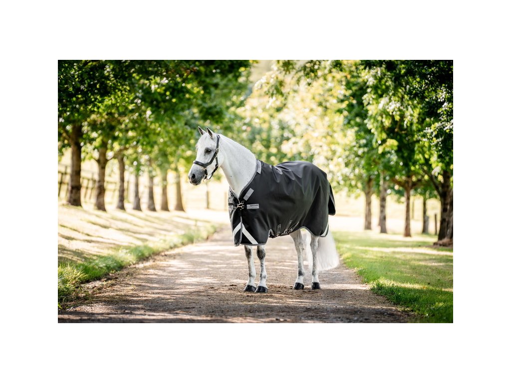Wysokiej jakości wodoodporna derka padokowa z wypełnieniem 100 g. Wykonana z bardzo wytrzymałego nylonu balistycznego (wytrzymałość 1680 D), który jest wodoodporny i jednocześnie oddychający. Wyściółka z gładkiej podszewki poliestrowej, która jest delikatna dla skóry i chroni przed otarciami. Podszewka zapewnia również właściwości antybakteryjne i antystatyczne. Anatomiczny krój w okolicy nóg zapewnia maksymalny komfort. Posiada proste zapięcie w kształcie litery V, potrójne zapięcie na brzuch i pasek na ogon. Wyposażona w elementy odblaskowe dla większego bezpieczeństwa. Derka jest kompatybilna z systemem podpinek.