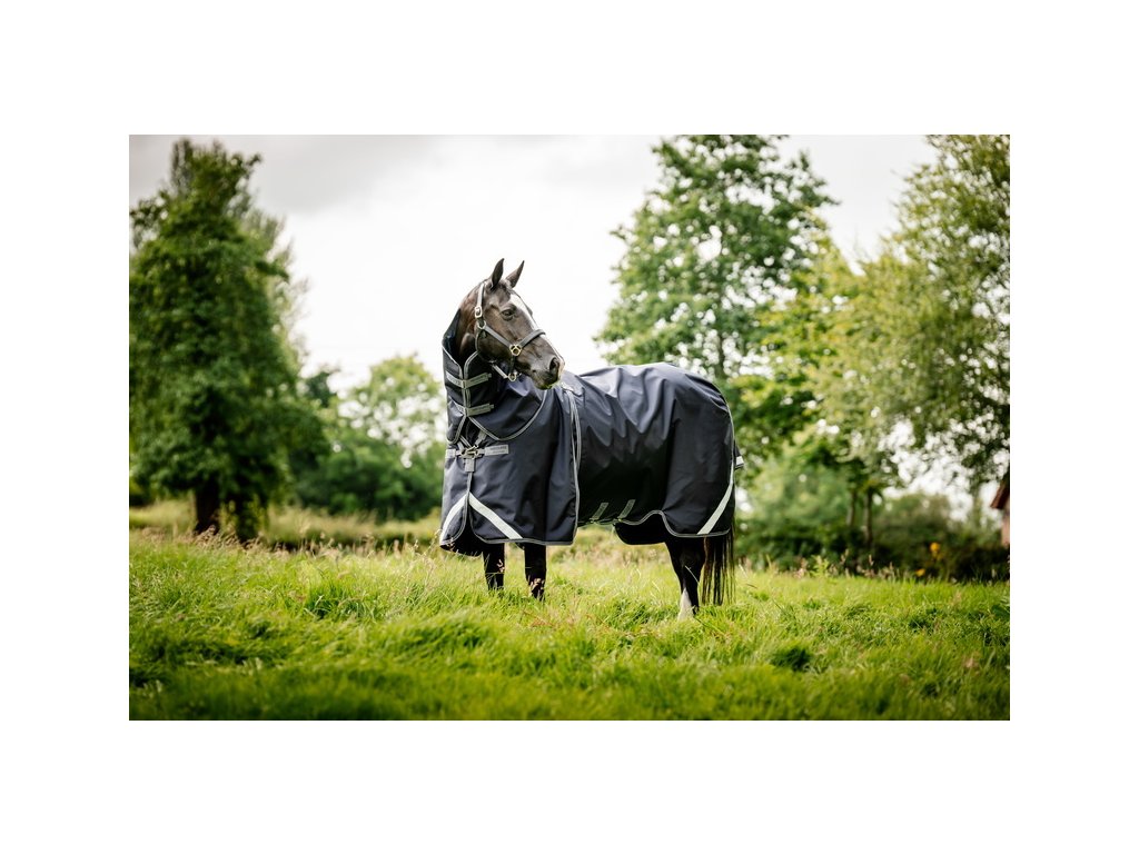 Rambo Optimo to wodoodporna derka padokowa dostarczana (bez ocieplenia 0 g) z odpinaną częścią szyjną (bez ocieplenia 0 g). Derka jest dostarczana z podpinką ocieplającą 200 g.
