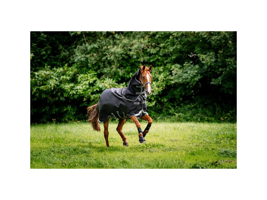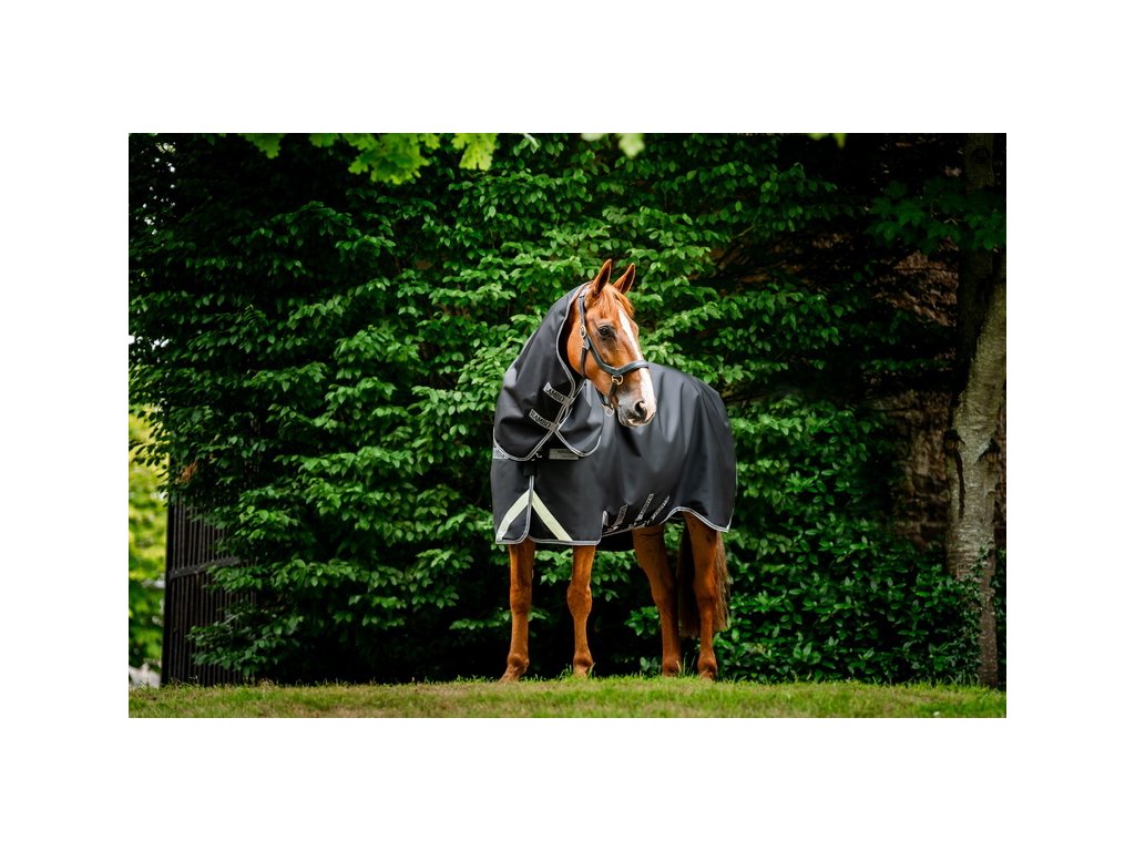 Wysokiej jakości derka padokowa z wypełnieniem 100g i odpinaną częścią szyjną. Idealna na chłodną zimową pogodę. Wykonana z najmocniejszego i najtrwalszego materiału na rynku - nylon balistyczny, wytrzymałość 1680 D, który jest o 120% mocniejszy od standardowego nylonu balistycznego. Materiał jest wodoodporny i wysoce oddychający. Podszewka wykonana jest z gładkiego poliestru, który jest delikatny dla skóry i chroni przed otarciami. Podszewka jest również antystatyczna i antybakteryjna. Posiada proste zapięcie karabińczykiem w kształcie litery V, które zapewnia maksymalną swobodę ruchów. Dodatkowe potrójne zapięcie pod brzuchem, pasek pod ogonem i osłona ogona. Anatomiczny krój w okolicy nóg zapewnia maksymalny komfort. Wyposażona w elementy odblaskowe dla większego bezpieczeństwa. Kompatybilna z systemem liner.