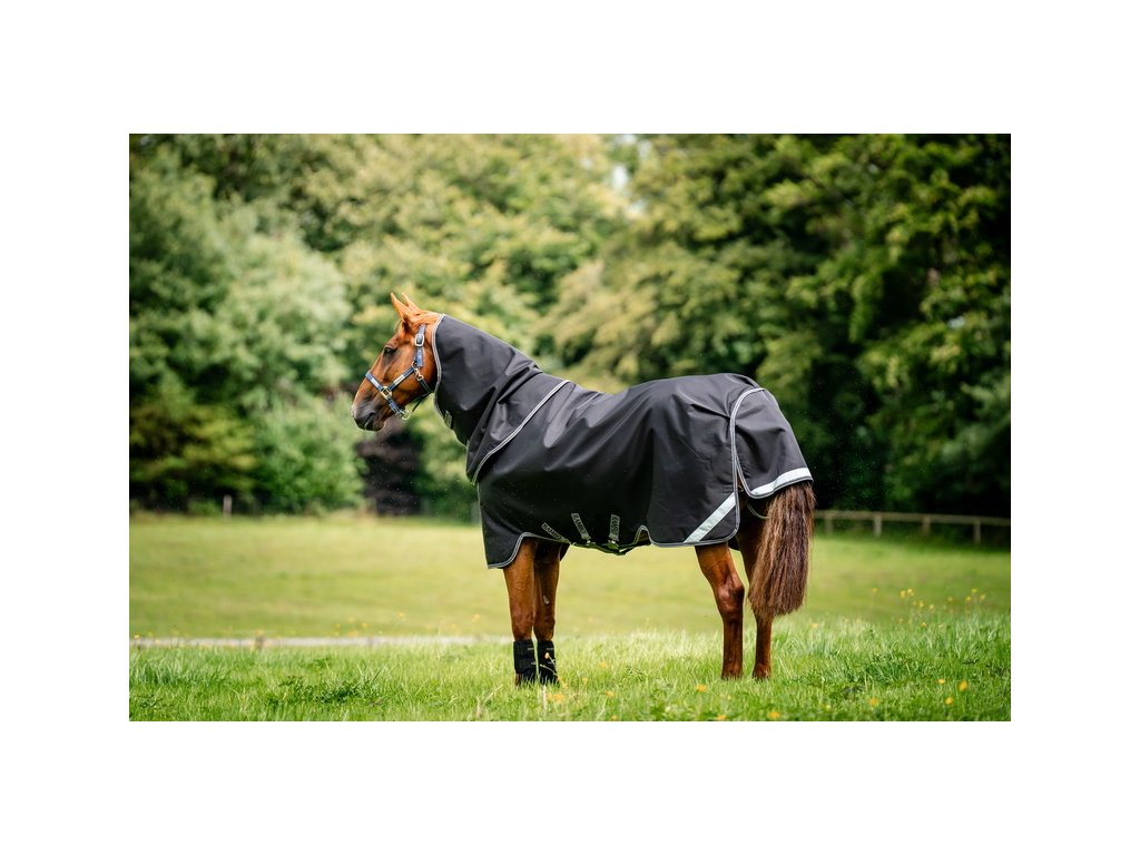 Bardzo popularna derka padokowa z częścią na szyję, o wysokiej izolacji 450 g dzięki technologii Vari Layer® = więcej ciepła, mniejsza waga. Grzbiet konia jest najlepiej izolowany (450 g), mniej po bokach (300 g), a najmniej na dolnej krawędzi derki (150 g). Idealna na mroźną zimową pogodę. Wykonana z najmocniejszego i najtrwalszego materiału na rynku - nylonu balistycznego, o unikalnej wytrzymałości 1680 D. Materiał jest nie tylko wodoodporny, ale także wysoce oddychający. Podszewka wykonana jest z gładkiego poliestru, który jest delikatny dla skóry i chroni przed otarciami, podszewka jest również antystatyczna i antybakteryjna. Cechy derki zostały odpowiednio przetestowane i są praktyczne do codziennego użytku. Wyposażona w proste zapięcie z przodu z karabińczykami w kształcie litery V, zapewniające maksymalną swobodę ruchów. Posiada również potrójne zapięcie krzyżowe pod brzuchem, pasek pod ogonem i osłonę ogona. Anatomiczny krój w okolicy nóg zapewnia maksymalny komfort. Wyposażona w elementy odblaskowe dla większego bezpieczeństwa. Kompatybilna z systemem linerów.