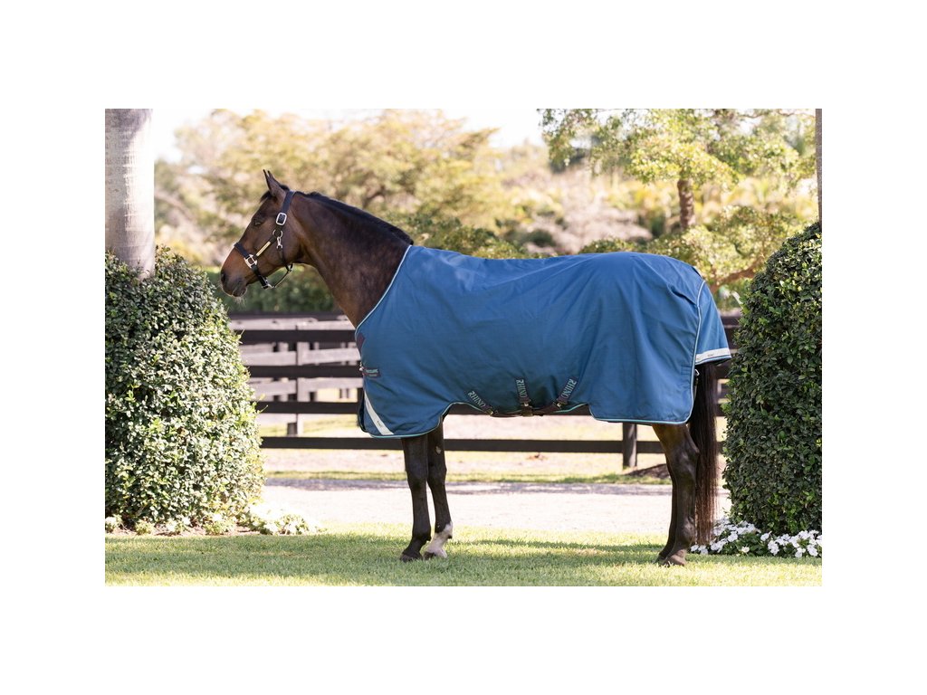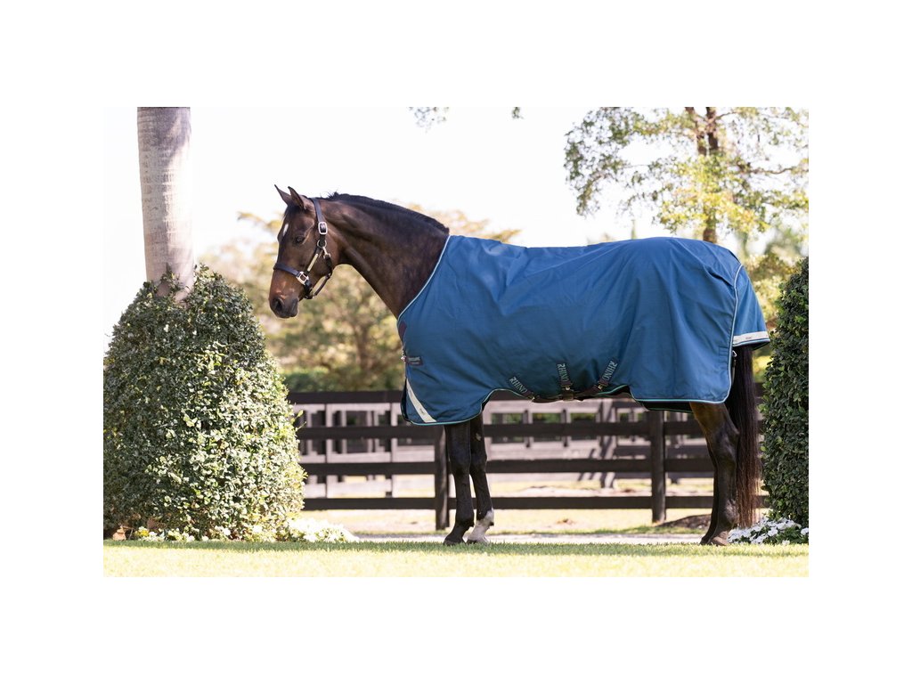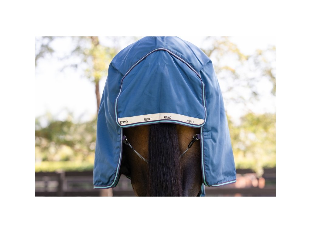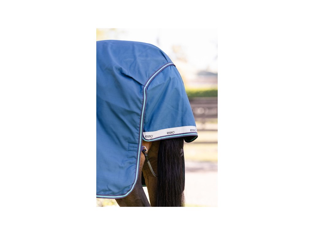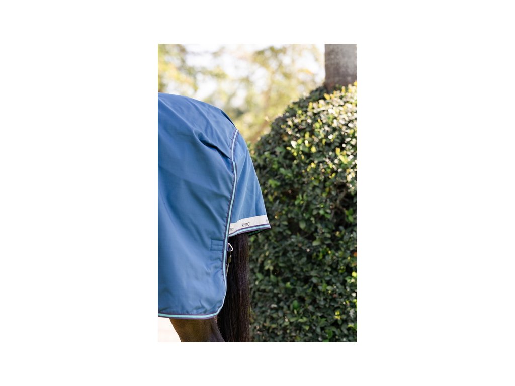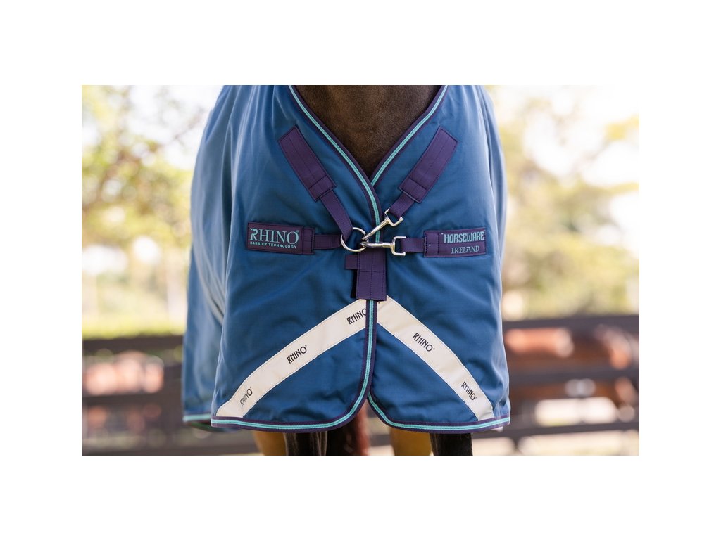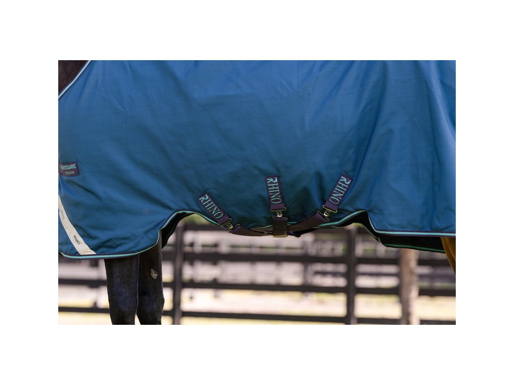 Bardzo wysokiej jakości derka padokowa z wypełnieniem 100g sprawdzi się w zimne dni. Seria Rhino® wykonana jest z zewnętrznego materiału polipropylenowego o wytrzymałości 1000D z technologią Aquatrans, która stanowi wodoodporną i oddychającą warstwę, pozostającą wodoodporną nawet w przypadku uszkodzenia materiału zewnętrznego. Polipropylen jest znacznie trwalszą alternatywą dla powszechnie stosowanego materiału poliestrowego. Wypełnienie z włókien termicznych zapewnia doskonałe i długotrwałe utrzymanie ciepła. Derka posiada również specjalne wycięcie w okolicy szyi, które wraz z anatomicznym wycięciem w okolicy nóg zapewnia maksymalną swobodę ruchów. Wyposażona jest również w proste zapięcie typu V, potrójne zapięcie krzyżowe pod brzuchem oraz pasek pod ogon. Wyposażona w elementy odblaskowe dla zwiększenia bezpieczeństwa. Derka jest kompatybilna z systemem podpinek.