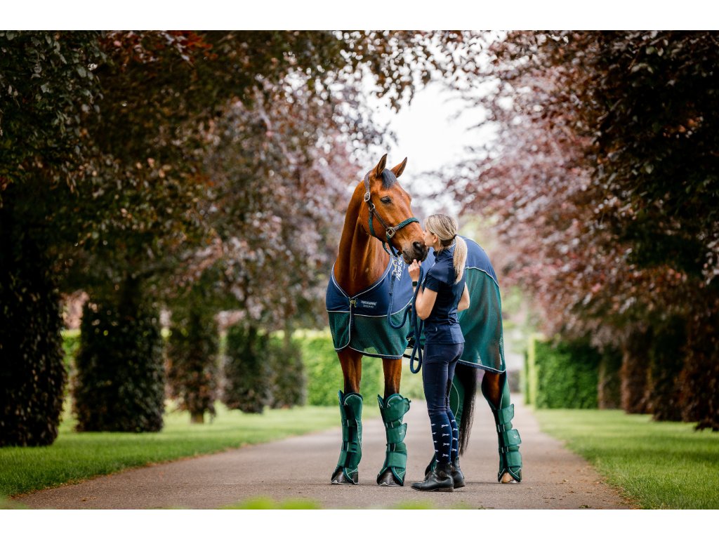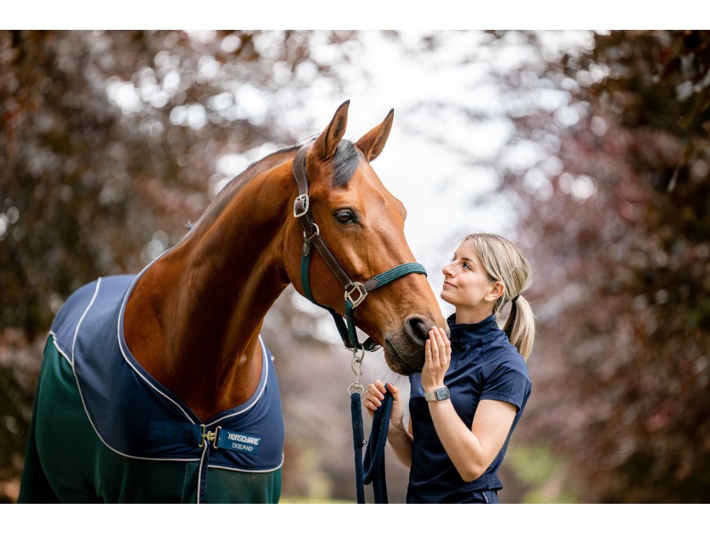 Nowa derka chłodząca z kolekcji Signature firmy Horseware! To bardzo luksusowa derka chłodząca, która zapewnia idealną równowagę między oddychalnością a komfortem. Materiał w tylnej części wykonany jest z polibawełny, a materiał po bokach z wytrzymałej siatki. Polibawełna, w porównaniu do klasycznego polaru, bardzo szybko wchłania wilgoć. Materiał siatkowy zapewnia doskonałą cyrkulację powietrza. To połączenie materiałów skutecznie odprowadza pot, jednocześnie chroniąc konia przed przegrzaniem. Derka jest wyposażona w proste zapięcie z przodu, krzyżowe zapięcie pod brzuchem i pasek pod ogonem.