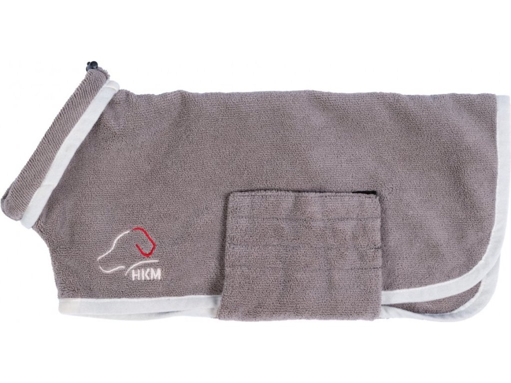 Szybkoschnąca derka dla psa. Łatwo się ją zakłada dzięki paskowi na rzep pod brzuchem. Ozdobiona haftem HKM. Dostępna w różnych rozmiarach.