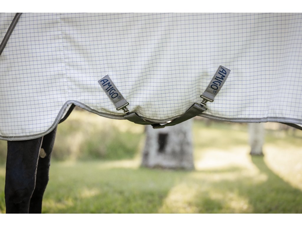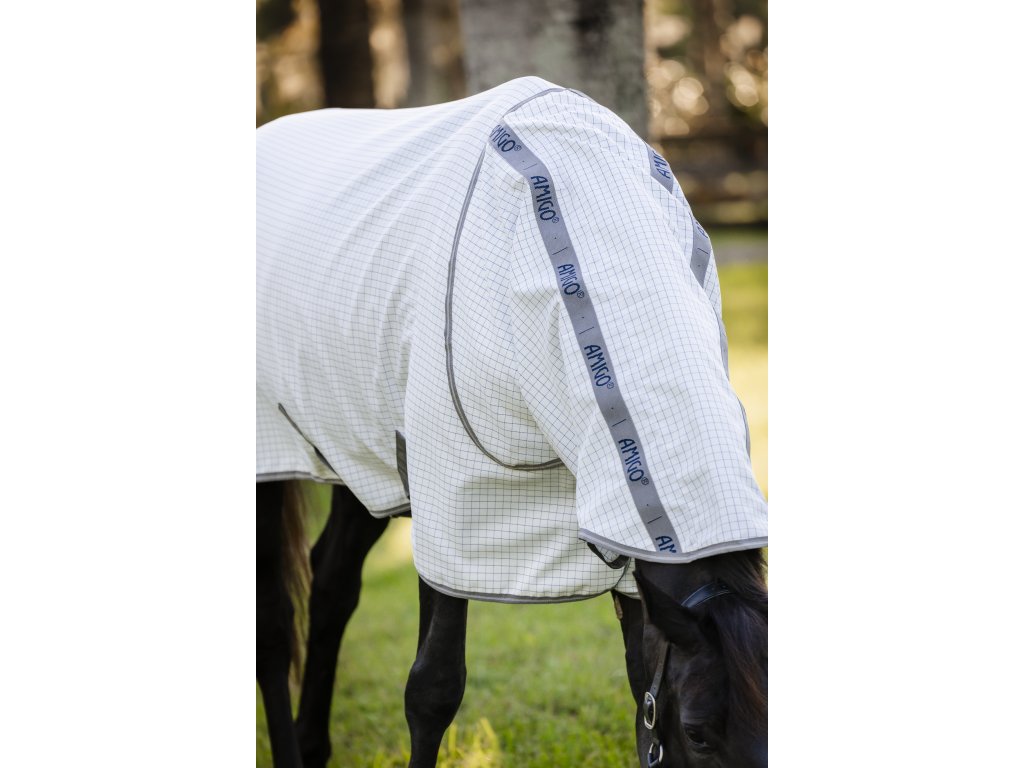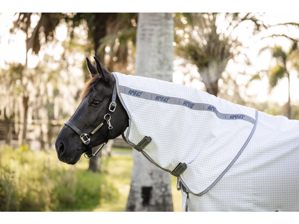 Lekka i oddychająca derka letnia Amigo, która chroni konia przed owadami, promieniowaniem UV i deszczem. Dostarczana z odpinanym elementem na szyję. Wykonana z oddychającego i wodoodpornego materiału, który zapewnia maksymalny komfort i swobodę ruchów. Derka jest wyposażona w praktyczne zapięcie na dysk z przodu, krzyżowe zapięcie na brzuchu, pasek na ogon i bardzo długą osłonę ogona.