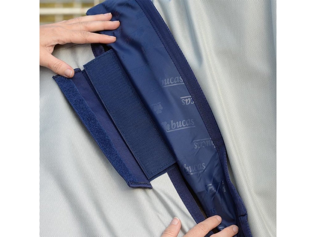 Aby zwiększyć izolację, derkę można warstwować z derkami producenta Bucas (podpinkami Bucas Quilts lub wybranymi derkami chłodzącymi Bucas). Zapinanie jest możliwe dzięki zapięciom na rzepy.