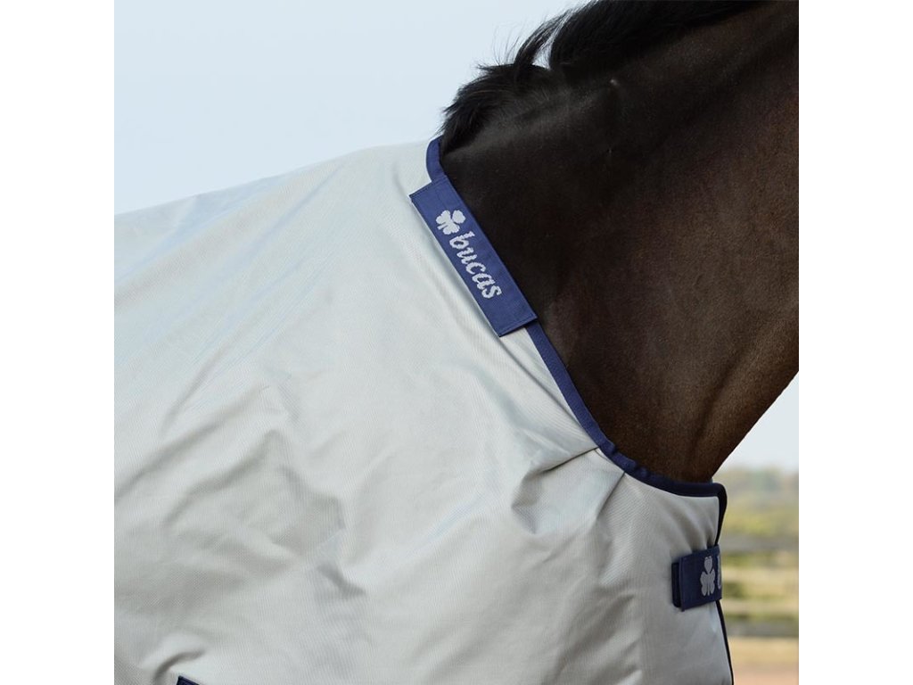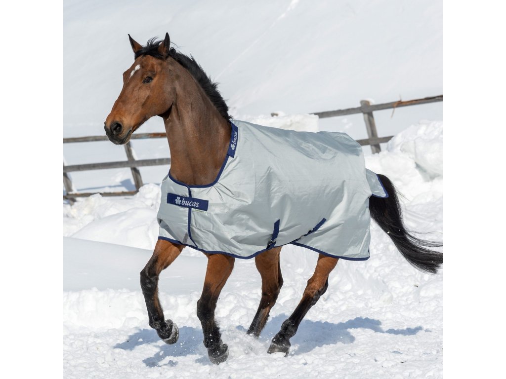 Wysokiej jakości derka padokowa Power Medium Turnout z ociepleniem 150 g, o zakresie komfortu termicznego od -15° do 14°C. Derki Power Turnout oferują najlepszą możliwą wytrzymałość, trwałość i jakość. W porównaniu do innych derek o podobnej wadze, zapewniają one maksymalny komfort i ochronę, zarówno w niższych, jak i wyższych temperaturach. Materiał zewnętrzny jest wykonany z nylonu balistycznego, który jest najbardziej wytrzymałym materiałem na rynku (wytrzymałość 1680D). Materiał jest również wodoodporny, oddychający i posiada wewnętrzną aluminiową powłokę odbijającą ciepło. Power Turnout umożliwia derkowanie natychmiast po jeździe lub umyciu konia dzięki specjalnej podszewce z polaru Stay-dry. Podszewka Stay-dry skutecznie odprowadza wilgoć, zapewnia szybkie schnięcie sierści i jednocześnie pozostaje sucha. Tylko w okolicy łopatek derka jest wyposażona w jedwabną podszewkę, która szczególnie chroni przed otarciami. Wyposażona w opatentowane zapięcie z przodu z klamrą Click'n Go i magnetycznym zatrzaskiem Snap-lock. Jest to magnetyczne zapięcie, które jest bezpieczne oraz bardzo łatwe i szybkie w zapinaniu i odpinaniu. Zapięcie zawiera nie tylko magnes, ale także ochronny rzep. Derka jest również wyposażona w krzyżowe zapięcie pod brzuchem i między nogami, pasek pod ogonem i osłonę ogona. Idealnie dopasowuje się dzięki marszczonemu materiałowi w okolicy łopatek. Uzupełniona o elementy odblaskowe z przodu derki i na osłonie ogona. Aby zwiększyć izolację, derkę można łączyć z innymi derkami producenta Bucas (szczególnie z podpinkami Bucas Quilts lub wybranymi derkami chłodzącymi Bucas). Ochraniacz na szyję Power Combi Neck można dokupić osobno.