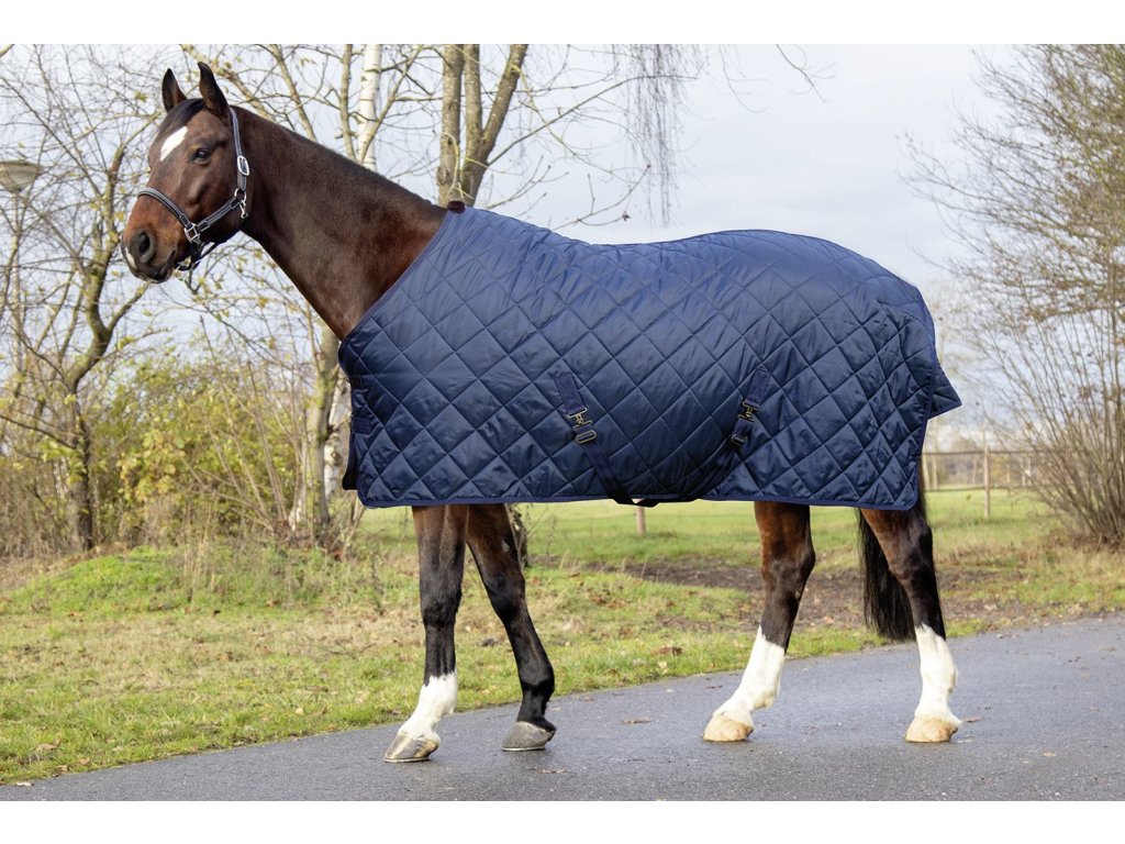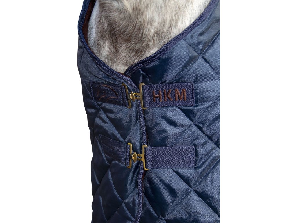 Bardzo wysokiej jakości derka stajenna z wypełnieniem 150 g marki HKM. Derka jest odpowiednia na zimę, wiatroodporna, a izolacja zapewnia ciepło. Zapięcie jest krzyżowe z metalowymi sprzączkami i jest regulowane. Z tyłu derki znajdują się paski do karabińczyków. Można prać w pralce i suszyć w suszarce. Dostępna w wielu rozmiarach i kolorach.