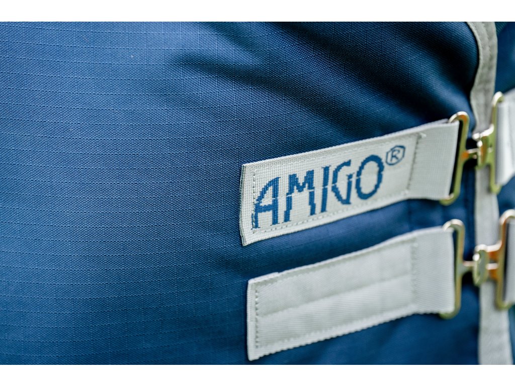 Wodoodporna derka padokowa Amigo bez ocieplenia 0 g, która nadaje się na przejściową pogodę. Wykonana z bardzo wytrzymałego materiału poliestrowego o wytrzymałości 900 D. Materiał jest wodoodporny, a także oddychający. Podszewka wykonana jest z gładkiego poliestru, który jest delikatny dla skóry i chroni przed otarciami. Podszewka jest również antystatyczna i antybakteryjna. Derka jest wyposażona w podwójne zapięcie z przodu, elastyczne zapięcie krzyżowe pod brzuchem i pasek pod ogonem. Anatomiczny krój w okolicy przedniej nogi zapewnia maksymalną swobodę ruchów. Element na szyję można zakupić osobno. Kompatybilna z systemem liner.