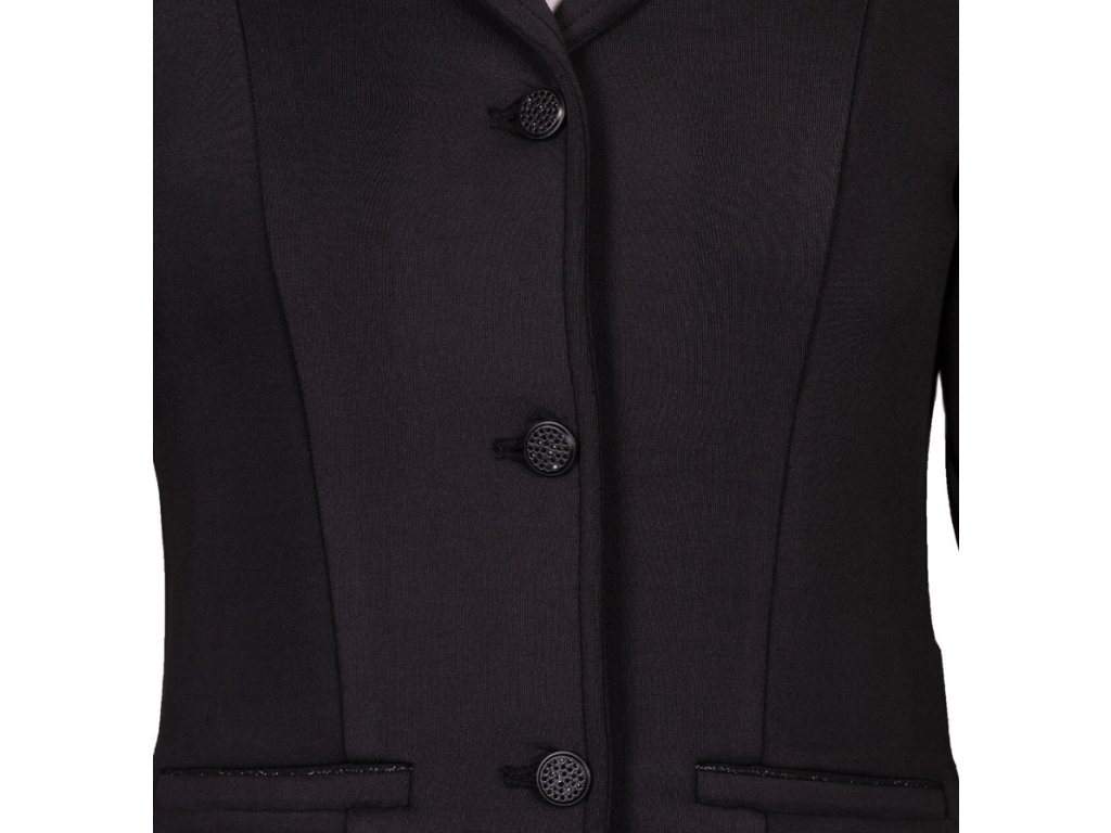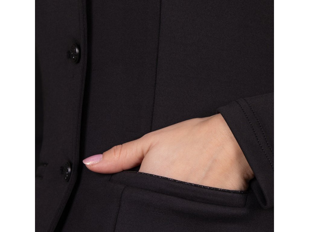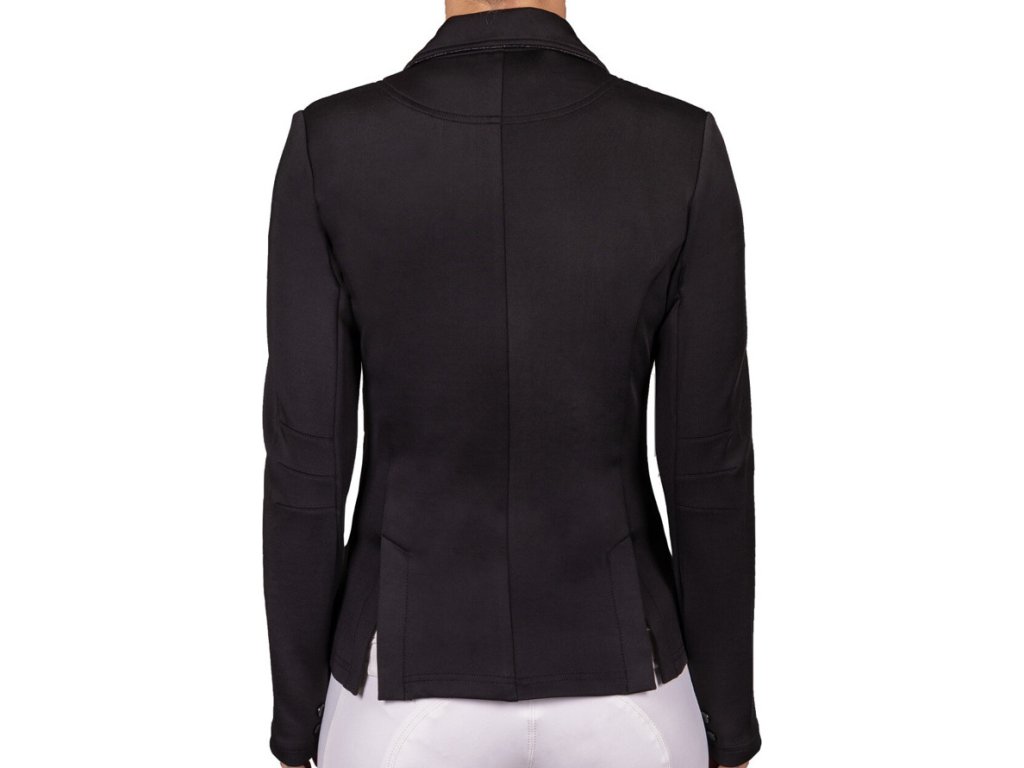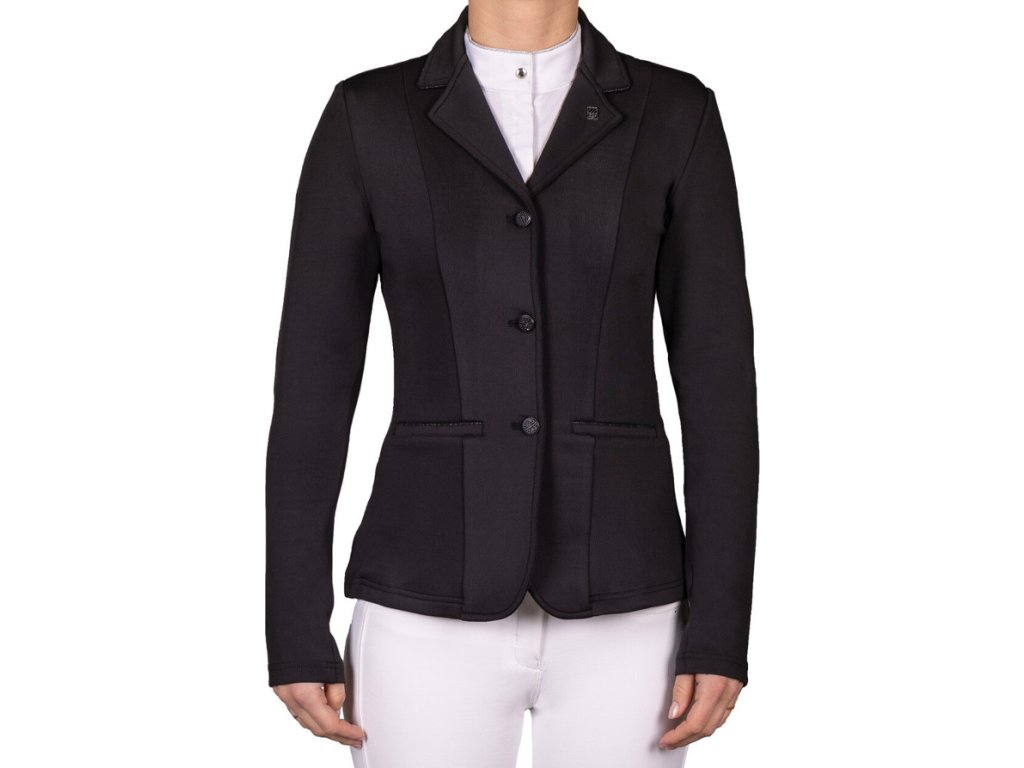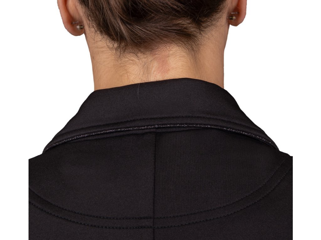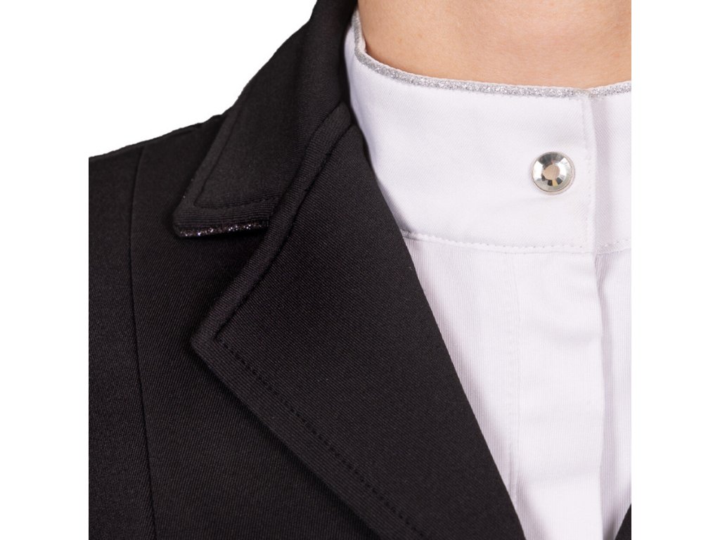 Wysokiej jakości frak konkursowy dziecięcy wykonany z wysoce oddychającego, rozciągliwego w czterech kierunkach materiału. Zastosowany materiał zapewnia wysoki komfort noszenia. Wyposażony w klasyczne zapięcie na guziki. Kołnierz, kieszenie i guziki są ozdobione błyszczącą lamówką, która dodaje eleganckiego akcentu.